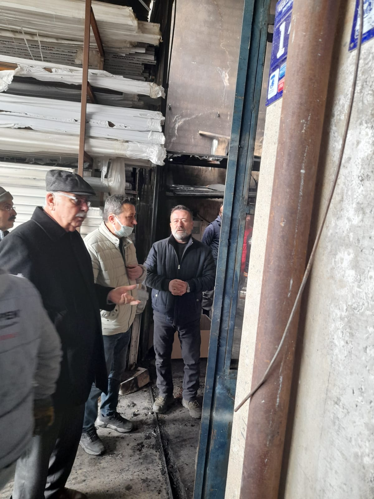 Belediye Başkanı Ülgür Gökhan, geçtiğimiz günlerde Küçük Sanayi Sitesinde çıkan yangında dükkanı zarar gören esnafı ziyaret etti.