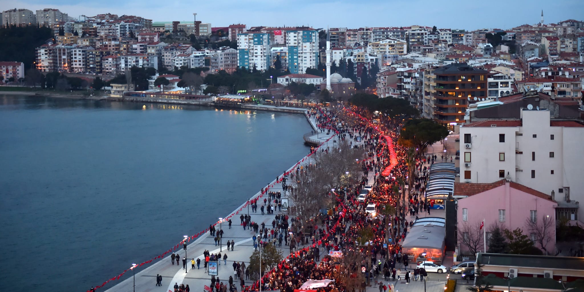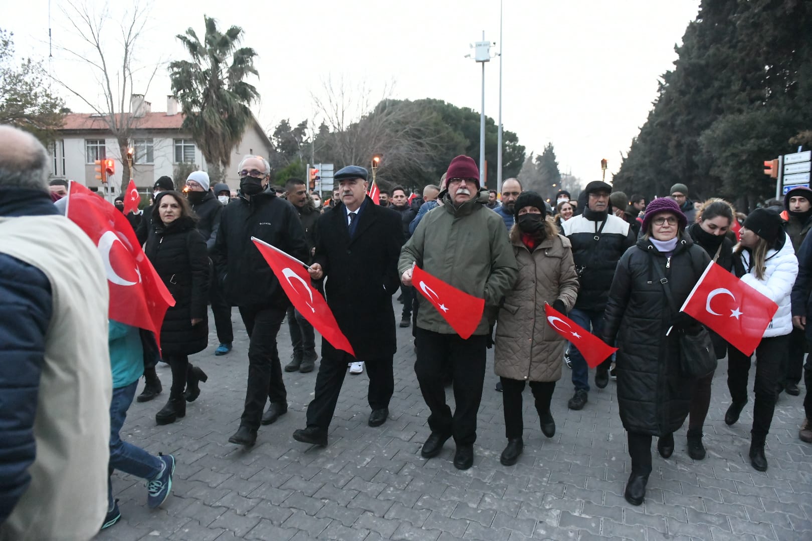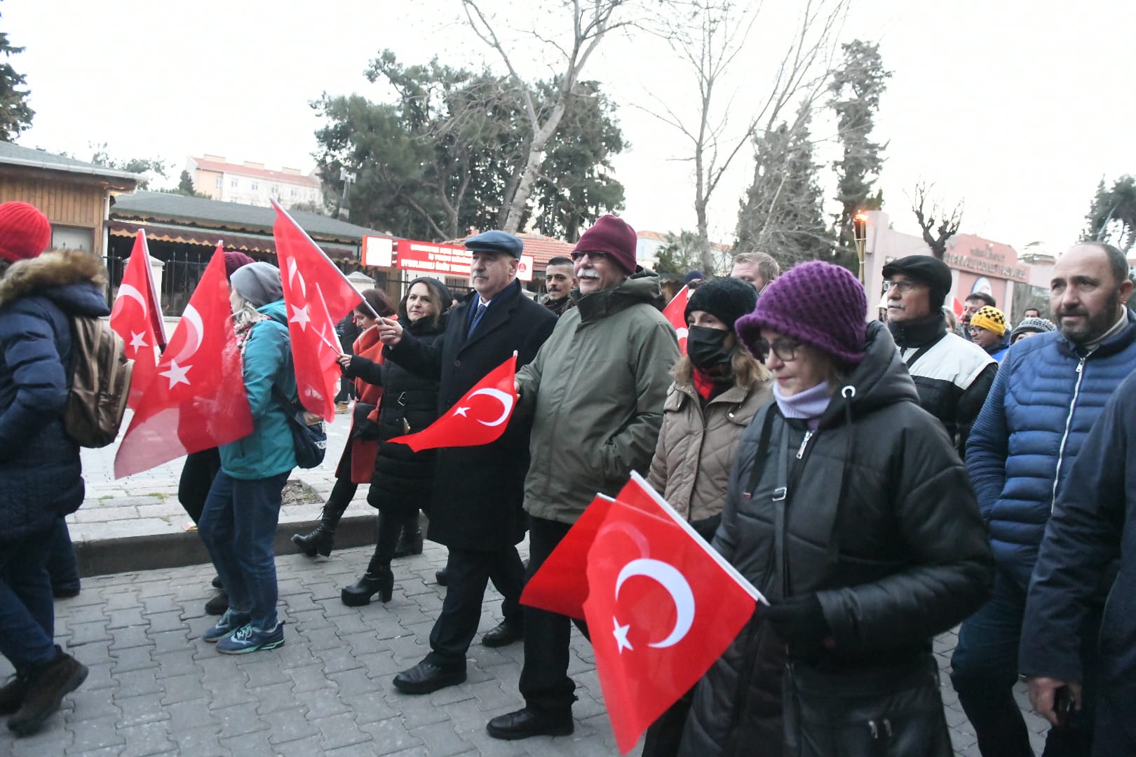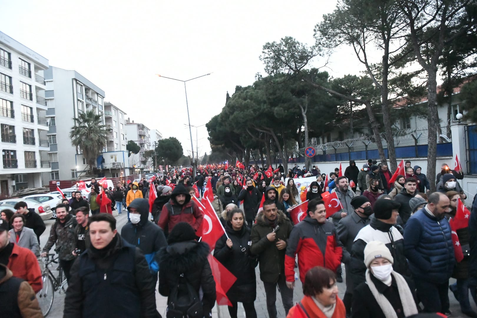 Belediye Başkanı Ülgür Gökhan’ın da Eşi Hale Gökhan ile birlikte katılım gösterdiği Fener Alayı için binlerce kentli saat 19:00’da Cumhuriyet Meydanı’nda bir araya geldi. Çok sayıda kentli ellerinde meşaleler, bayraklar ve pankartlarla 18 Mart Deniz Zaferi’nin coşkusunu birlikte marşlar söyleyerek yaşadı.