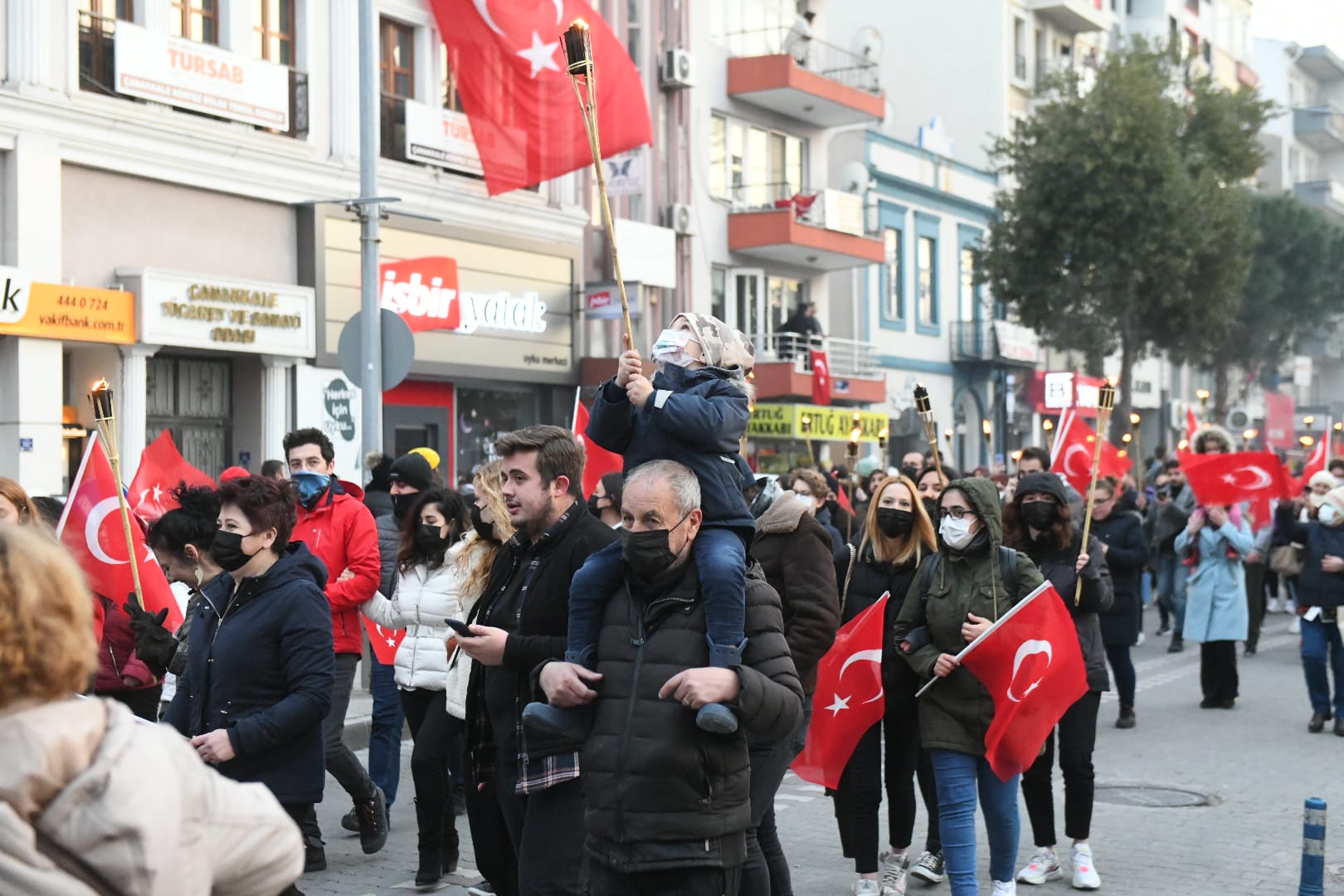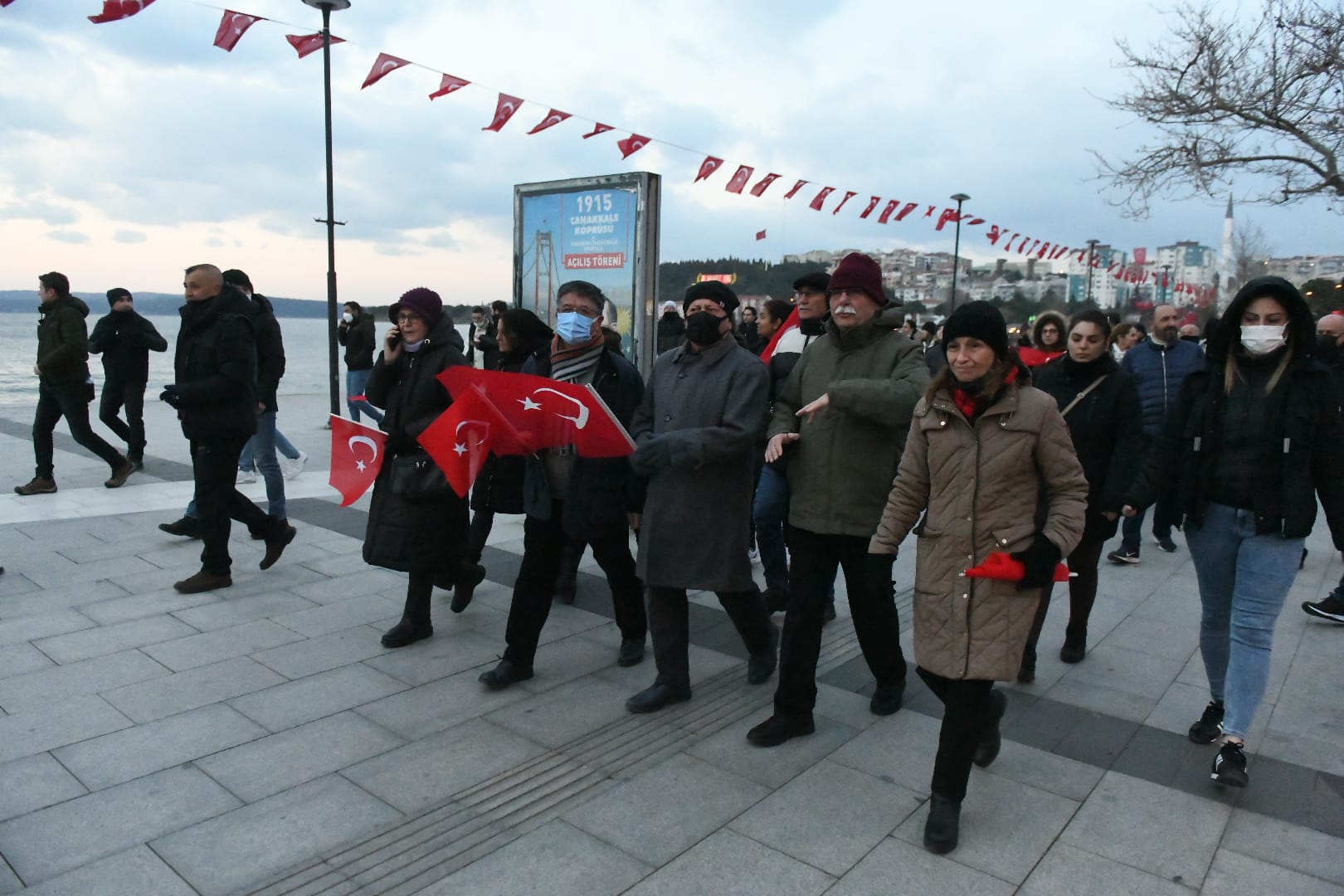 Çanakkale’nin geçilmez olduğunun tüm dünyaya ilan edildiği 18 Mart Deniz Zaferi’nin 107. yıldönümü nedeni ile düzenlenen Fener Alayı için bir araya gelen kentlilerin Cumhuriyet Meydanı’ndan başladıkları yürüyüş, İskele Meydanı’na kadar büyük bir coşku ile devam etti.