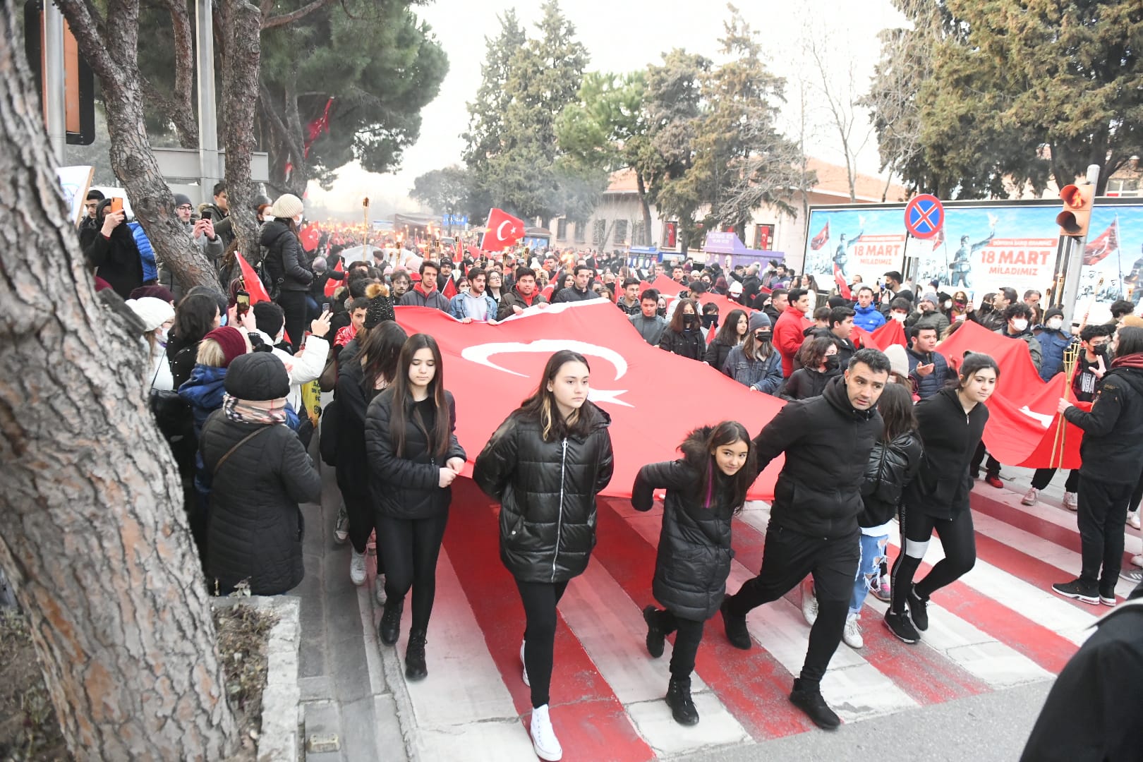 18 Mart Şehitleri Anma Günü ve Çanakkale Deniz Zaferi’nin 107. yıldönümünde düzenlenen Zafer Haftası etkinlikleri kapsamında 18 Mart 2022 Cuma günü gerçekleştirilen Fener Alayına kentliler yoğun ilgi gösterdi.