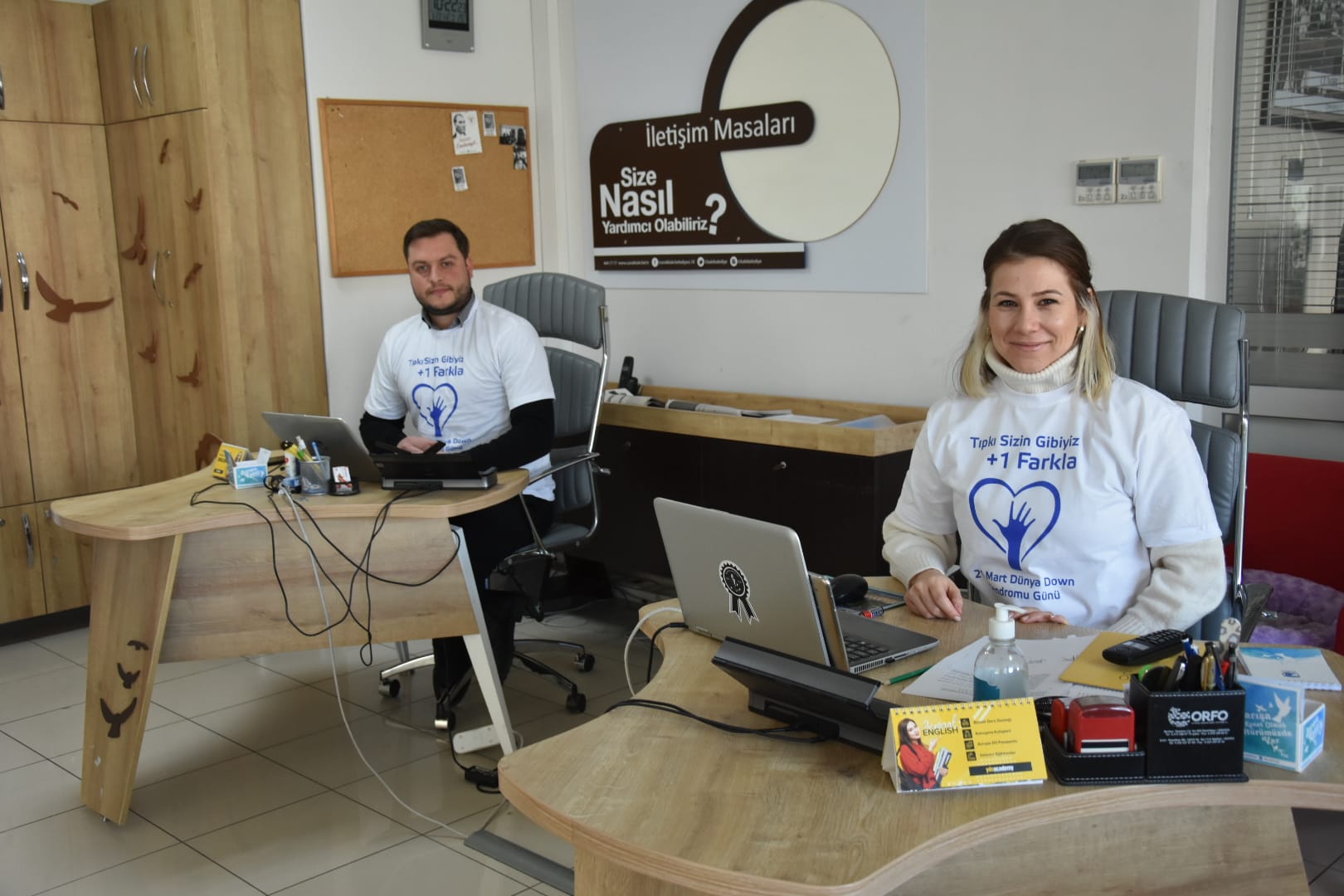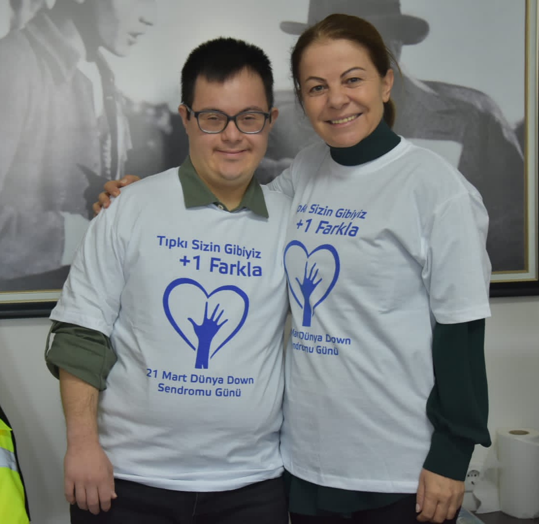 21 Mart Dünya Down Sendromu Farkındalık gününde yüreklerindeki tertemiz sevgi ve yüzlerindeki sıcacık gülümse ile hayatımıza “artı 1 değer” katan Down sendromlu bireylere dikkat çekmek, bu özel günlerinde yanlarında olduğumuzu hatırlatmak için iletişim masalarında görevli personelimiz “Tıpkı Sizin Gibiyiz +1 Farkla” yazılı t-shirt giyerek belediye binamıza gelen kentlilerimize hizmet verdi.