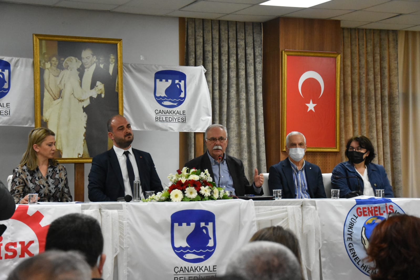 Toplantıda söz alan DİSK Genel İş Çanakkale Şube Başkanı Metin Ceylan ise; “Bugün burada Çanakkale Belediyesine bağlı, kadrolu İşçilerimizin, Çanakkale Kentsel Hizmetler Şirketinin, Çanakkale Hizmet Grupları Şirketinin ve Çanakkale Katı Atık Yönetim Birliğinin Toplu İş Sözleşmelerinin imza töreni için bir araya geldik. Bu sözleşmelerden yararlanacak emekçi sayımız bin 50 kişidir. Toplu sözleşmeler pazarlık masalarıdır, sendika olarak insanca yaşayacak bir ücret talep etme hakkımızı sonuna kadar kullandık. Bu sözleşmenin gerçekleştirilmesinde emeği geçen Çanakkale Belediye Başkanı Sayın Ülgür Gökhan' a, kurmaylarına ve çalışma arkadaşlarıma teşekkür ederim” dedi.