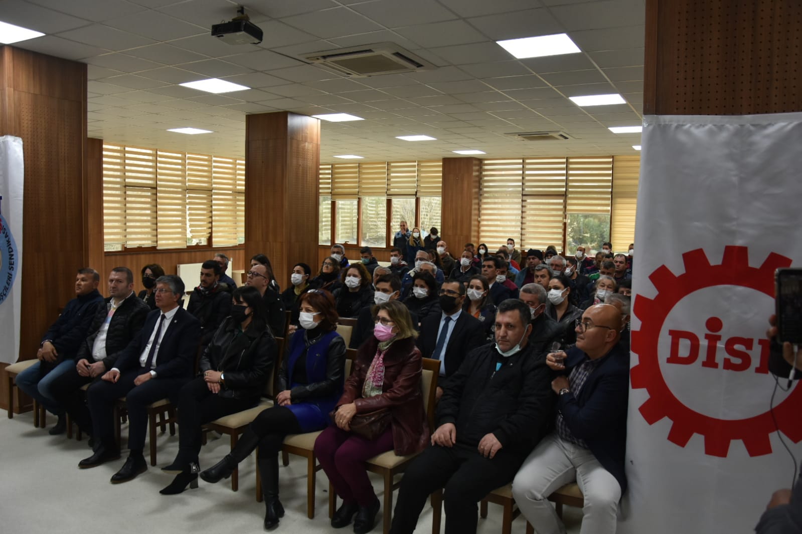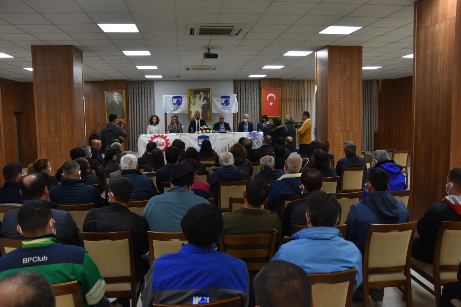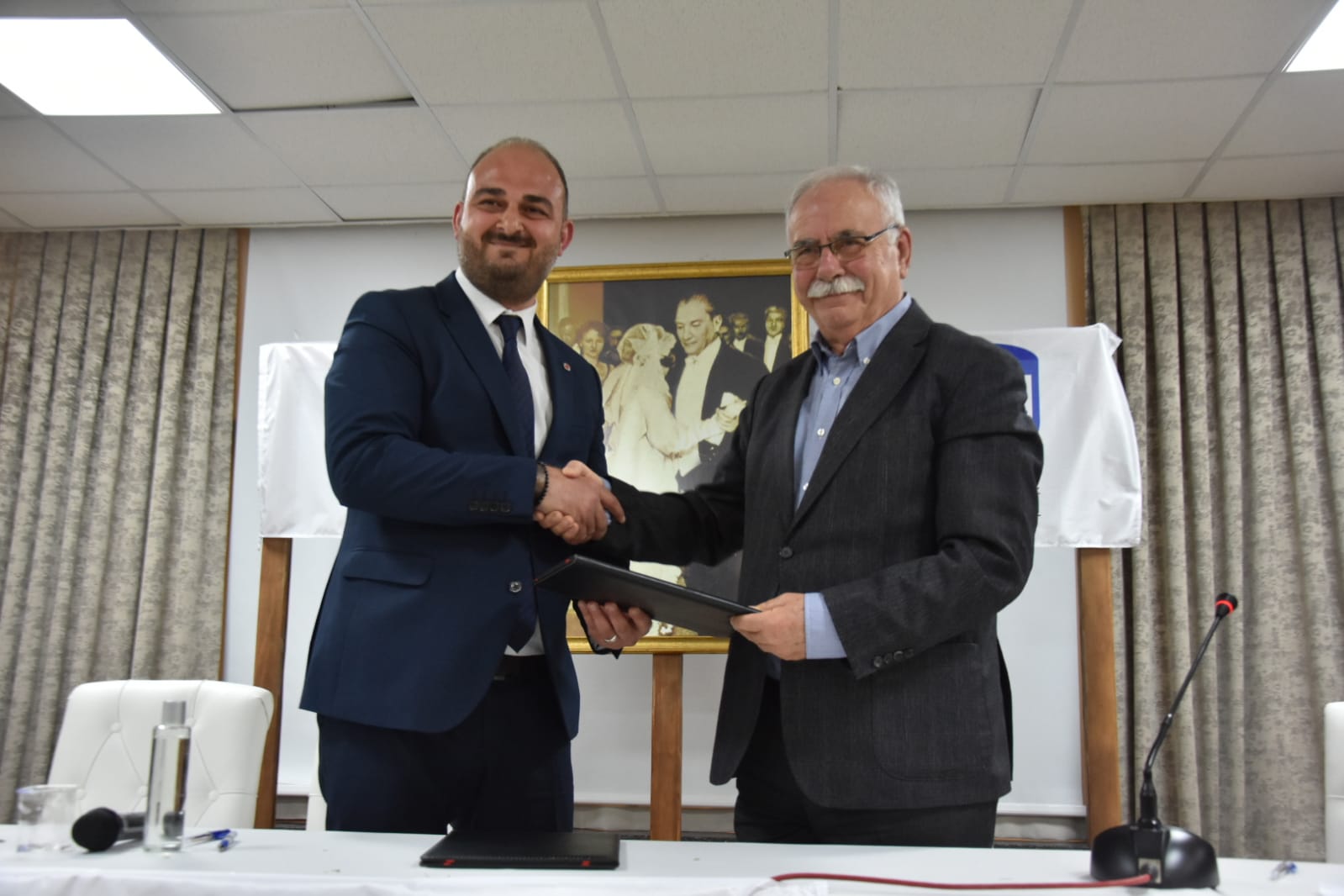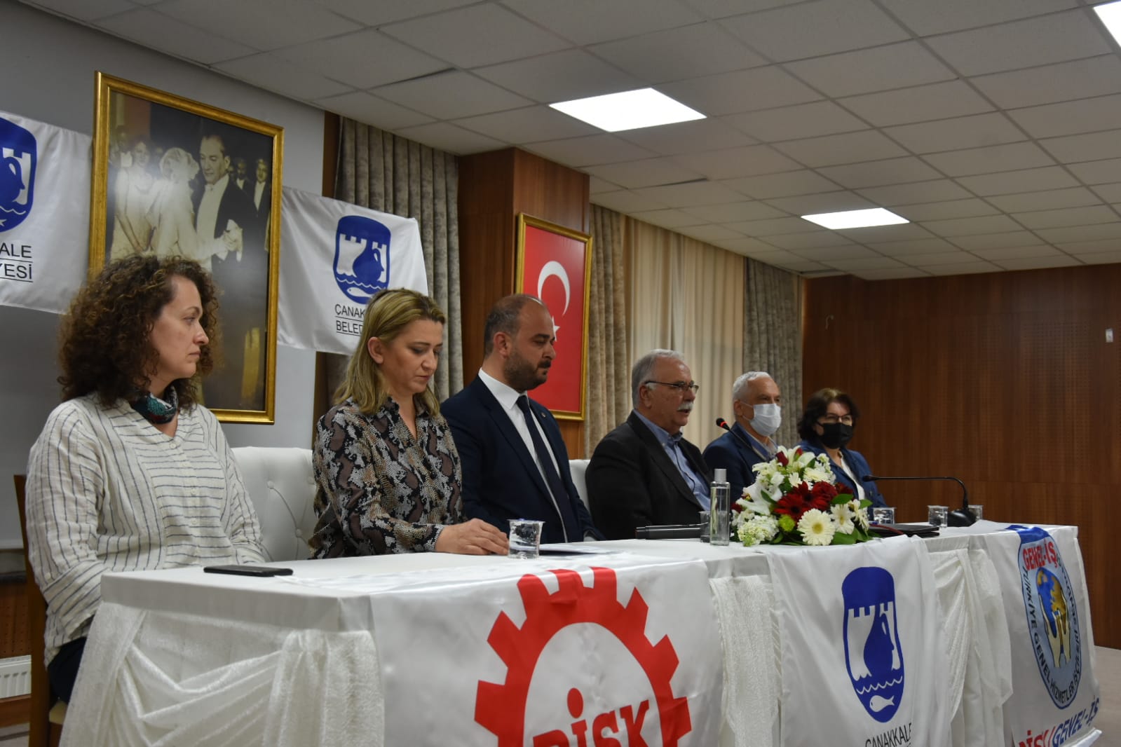 Konuşmaların ardından Başkan Gökhan ve DİSK Genel İş Çanakkale Şube Başkanı Ceylan arasında toplu iş sözleşmesi için imzalar atıldı.