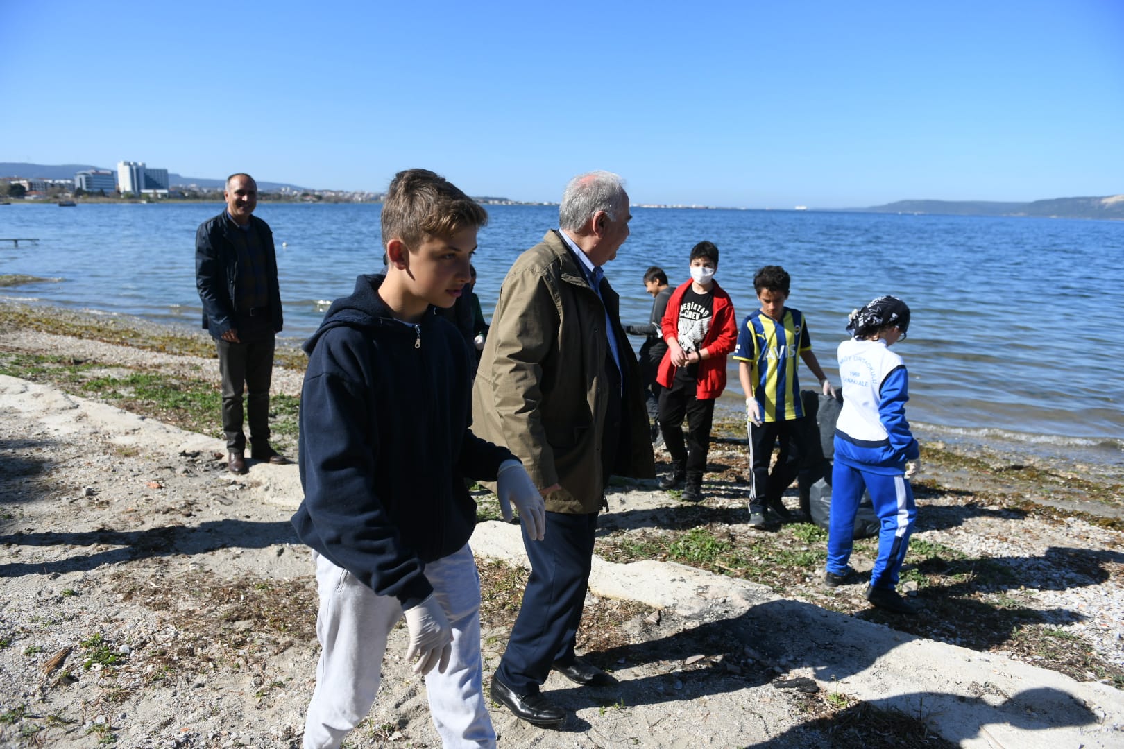 Merkezi ziyaret eden Erenköy Ortaokulu öğrencileri tarafından gerçekleştirilen sahil temizliği etkinliğine de katılan Başkan Gökhan, çevre kirliliğine karşı gösterdikleri duyarlılık nedeni ile öğrencileri tebrik etti.