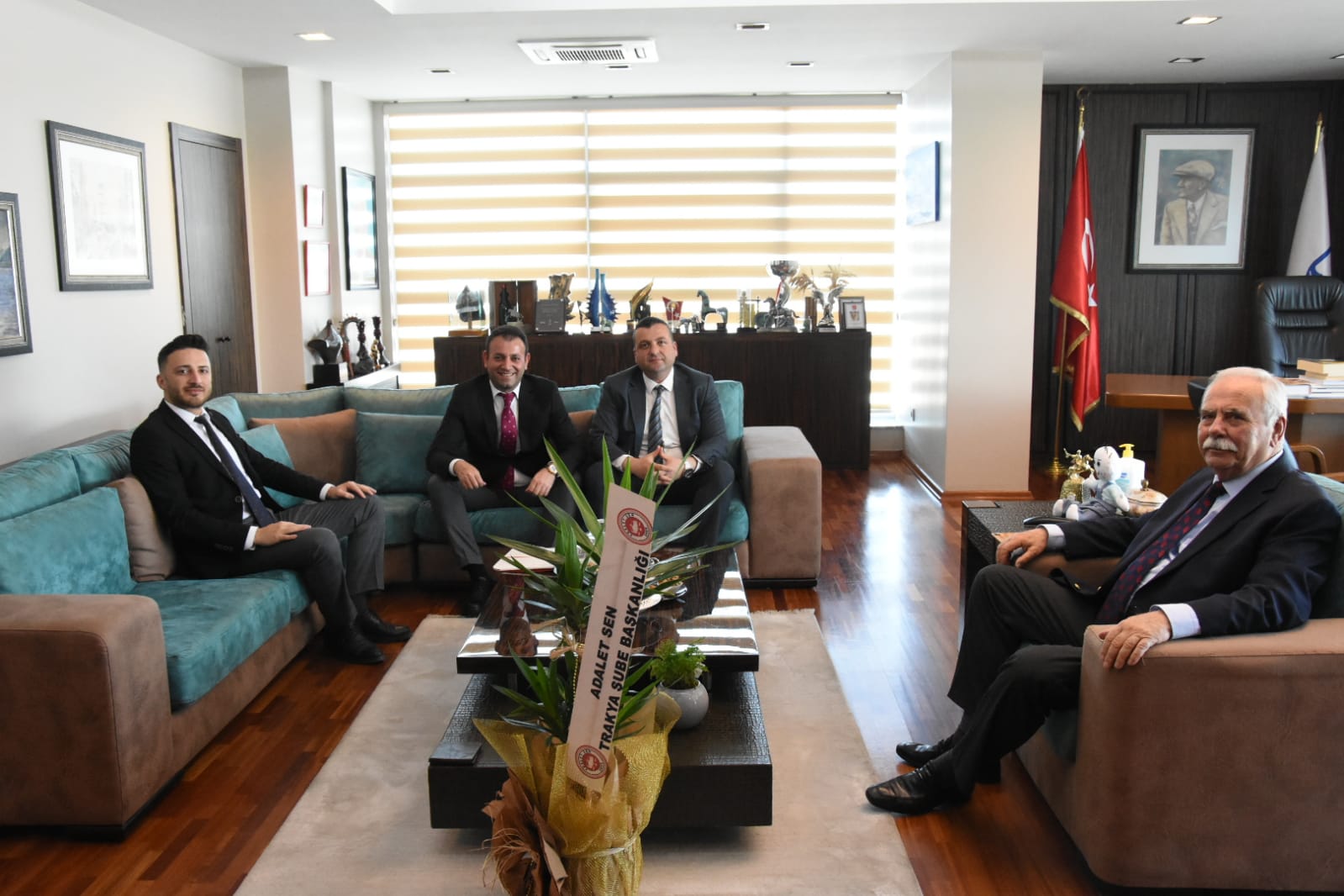 Adalet-Sen Trakya Bölge Başkanlığı ve Çanakkale Şubesi temsilcileri Çanakkale Belediye Başkanı Ülgür Gökhan’a nezaket ziyaretinde bulundu
