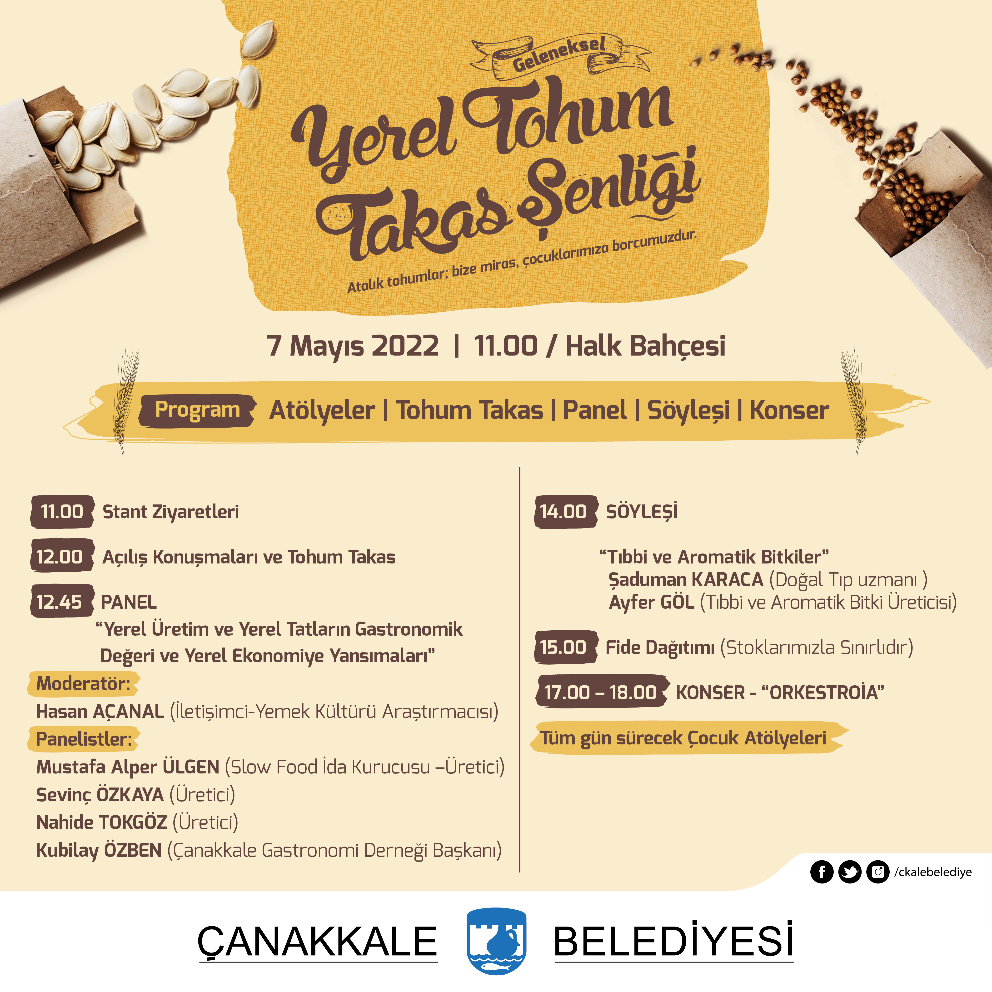 Üreticiler ve vatandaşlar arasındaki yerel tohumların alışverişinin gerçekleşeceği Tohum Takas Şenliğinde, tohum takasının yanı sıra, atölyeler, panel, söyleşi ve konser gibi birçok etkinlik gerçekleştirilecek.