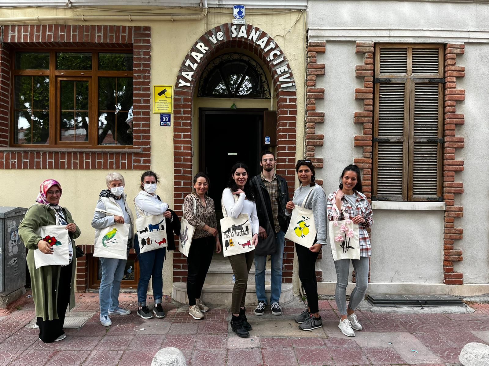 “Kendi Bez Çantanı Yap” atölyesi 30 Nisan Cumartesi günü, Yazar ve Sanatçı Evi'nde saat 13.00'de başladı. Katılımcılar, atölye boyunca bez çanta dikimi ve süslemelerini gerçekleştirerek kendi tasarımlarını oluşturdular. Gün boyunca keyifle çalışmasını sürdüren katılımcılar; atölye sonunda, kendi çantasıyla atölyeden ayrıldı.