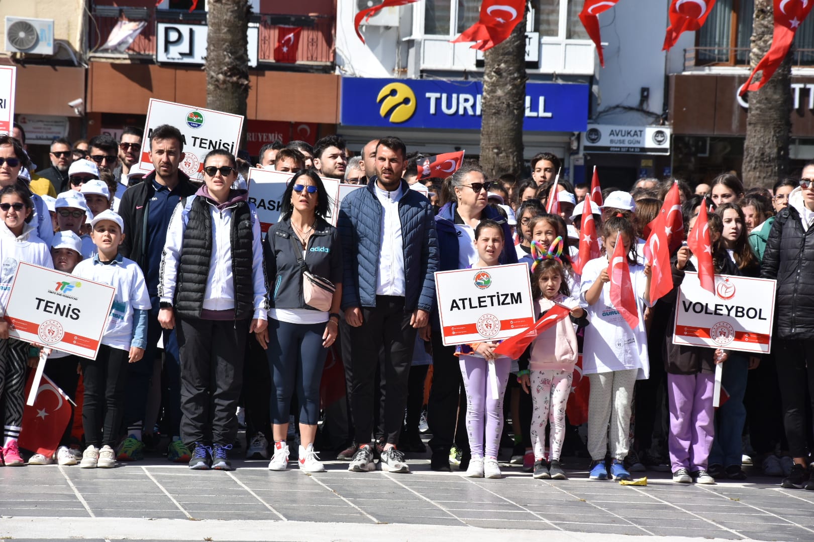 Çelenk törenin ardından 19 Mayıs Atatürk'ü Anma, Gençlik ve Spor Bayramı kutlama programı kapsamında Bayrak Yürüyüşü gerçekleştirildi. Cumhuriyet Meydanı'ndan başlayan yürüyüş, İnönü Caddesi üzerinden devam ederken, Kordonboyunda bulunan Troia Atı önünde sona erdi.