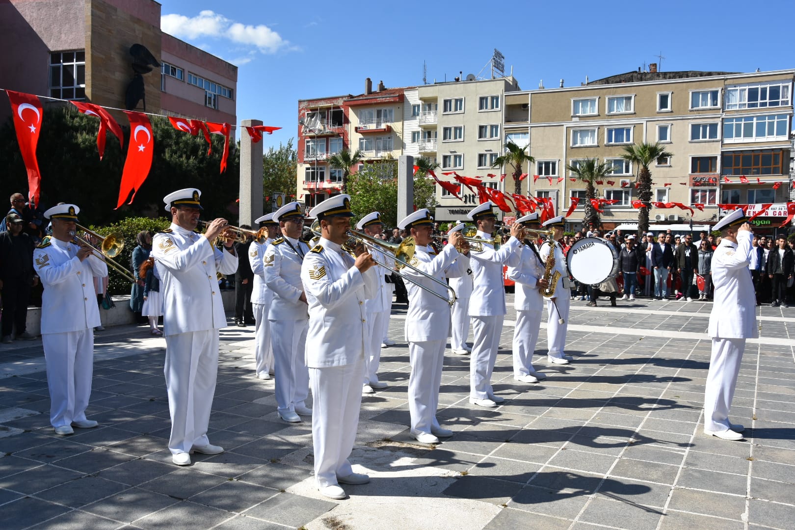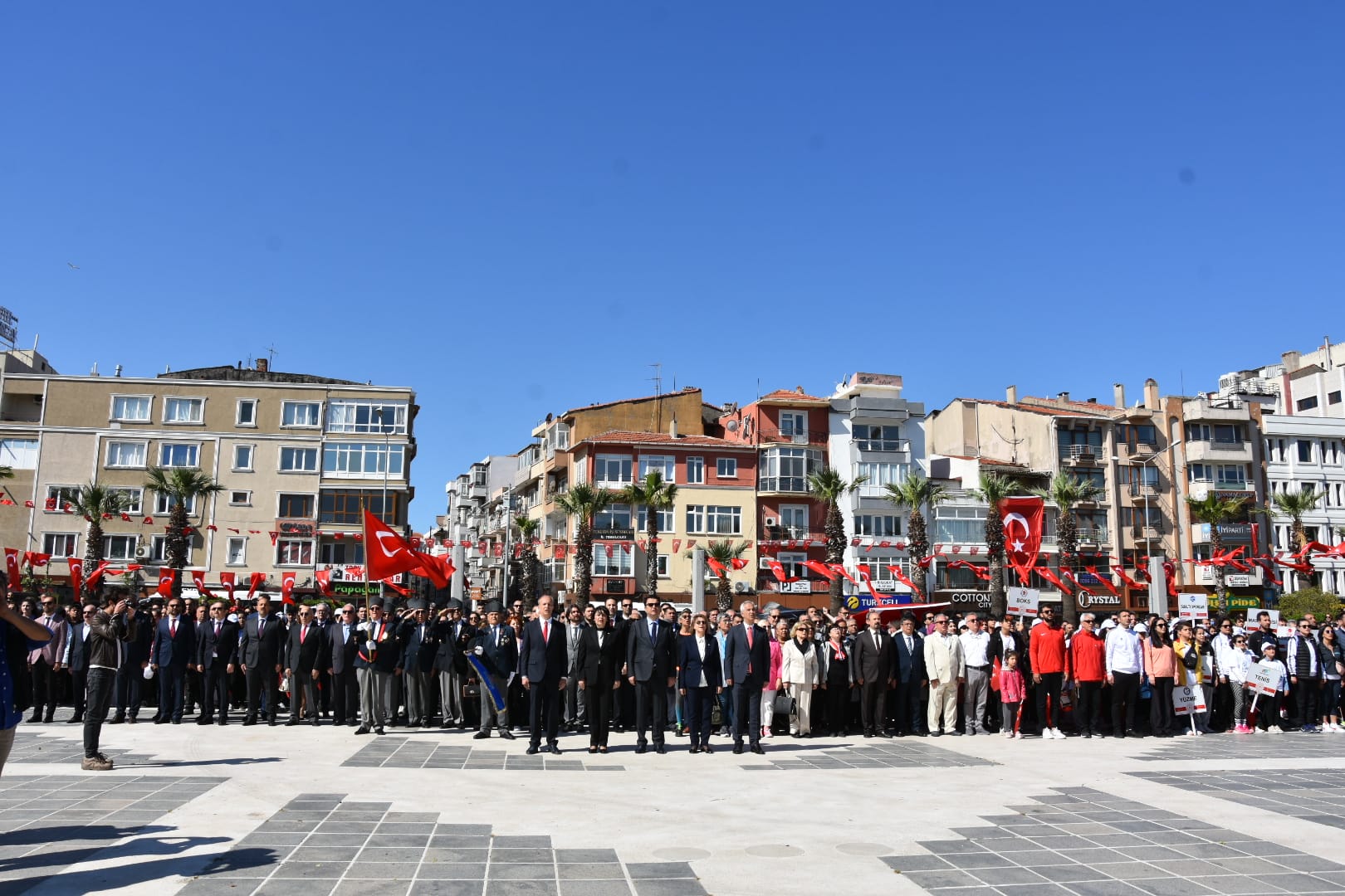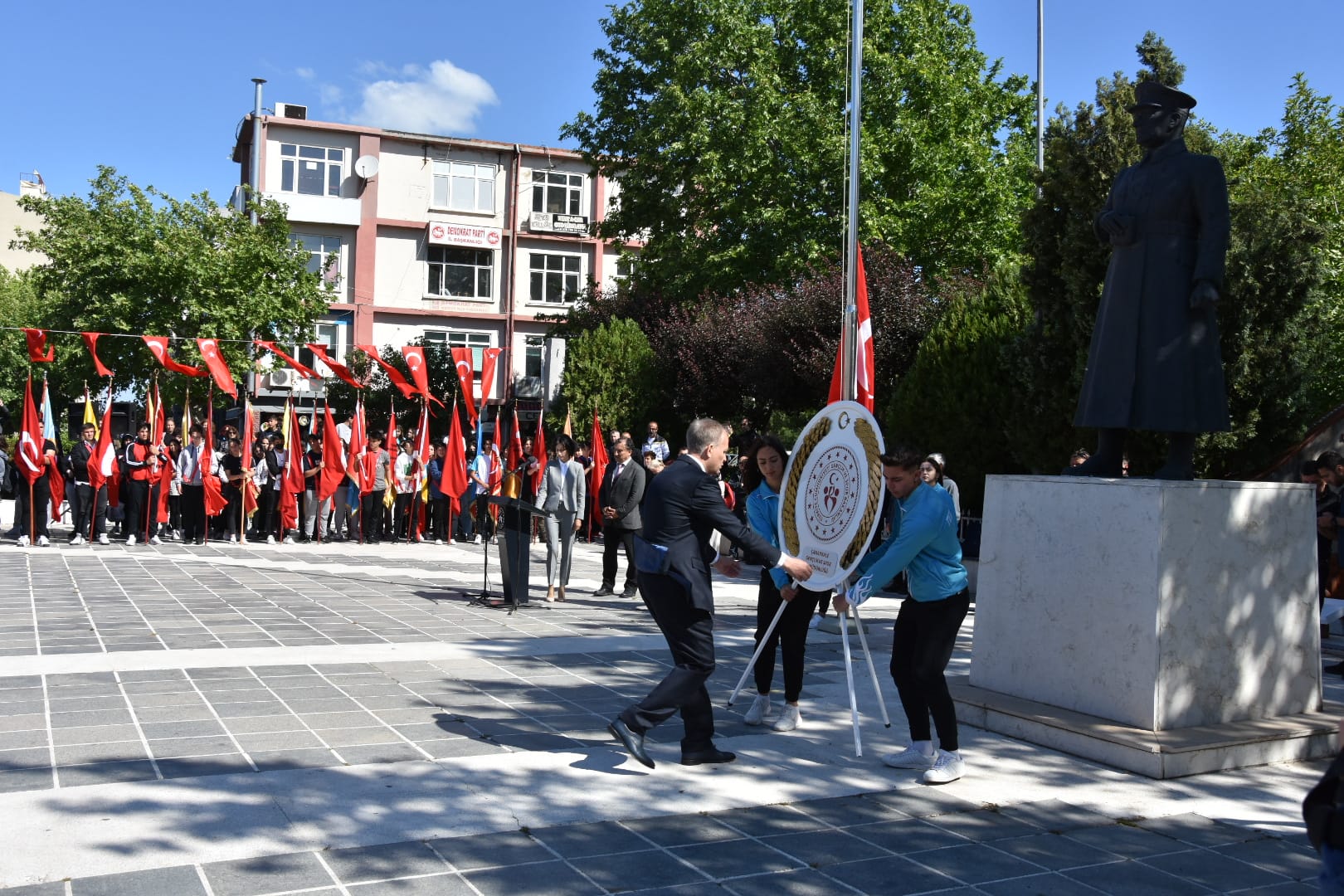 Atatürk anıtına çelenk sunulması ile başlayan tören, saygı duruşu ve İstiklal Marşı'nın okunması ile devam ederken, günün anlam ve önemine ilişkin yapılan konuşmaların ardından çelenk sunma töreni sona erdi.