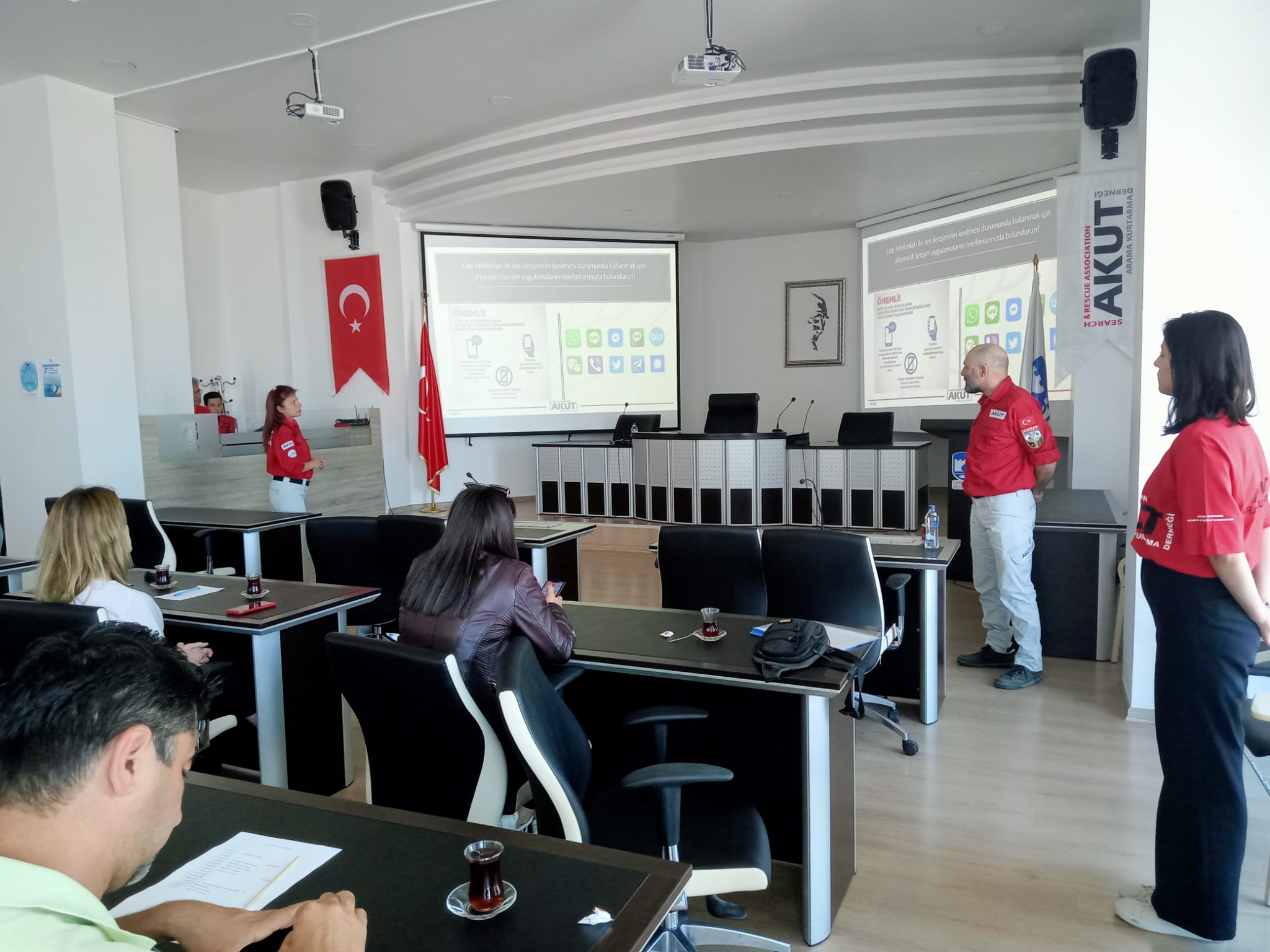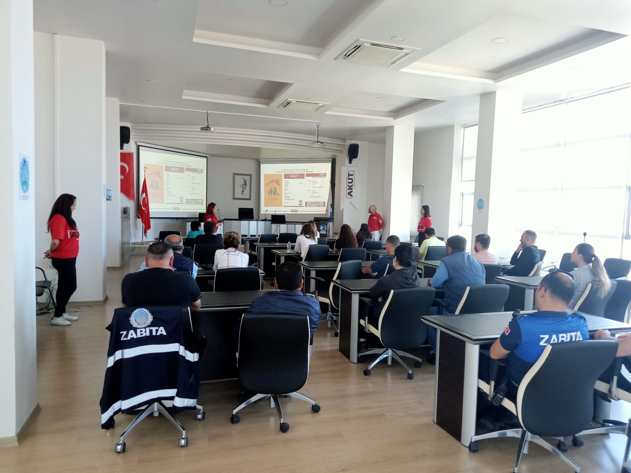 Belediye Meclis Salonu'nda gerçekleştirilen kurum içi eğitimi kapsamında, AKUT ekipleri olası bir deprem anında ve sonrasında yapılması gerekenlere yönelik belediye personeline eğitim verdi. Eğitimde deprem anı ve sonrasında özellikle can kaybının önlenmesine yönelik yapılması gerekenlerin yanı sıra, iş yerlerinde olası bir depreme karşı nasıl hazır olunacağı ve bu doğrultuda alınması gereken önlemlere ilişkin de bilgiler verildi.