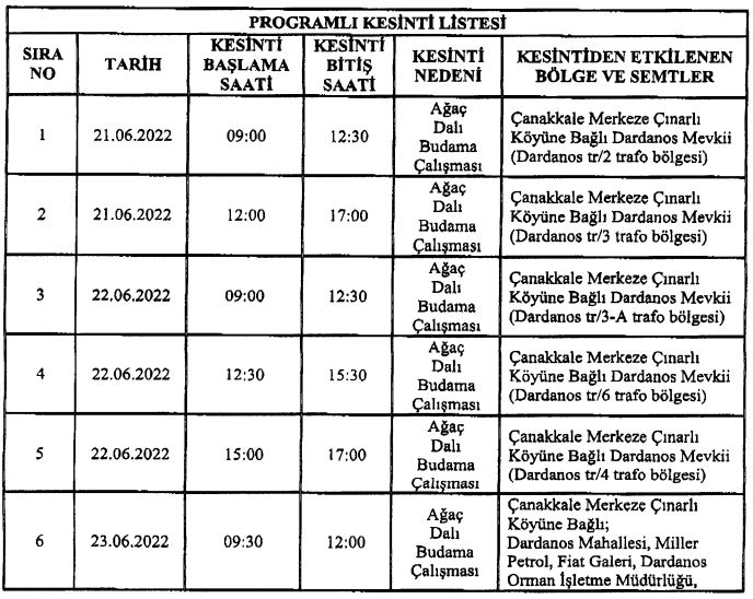 Uludağ Elektrik Dağıtım A.Ş. Çanakkale İşletme Bakım Mühendisliğinden yapılan açıklamaya göre;