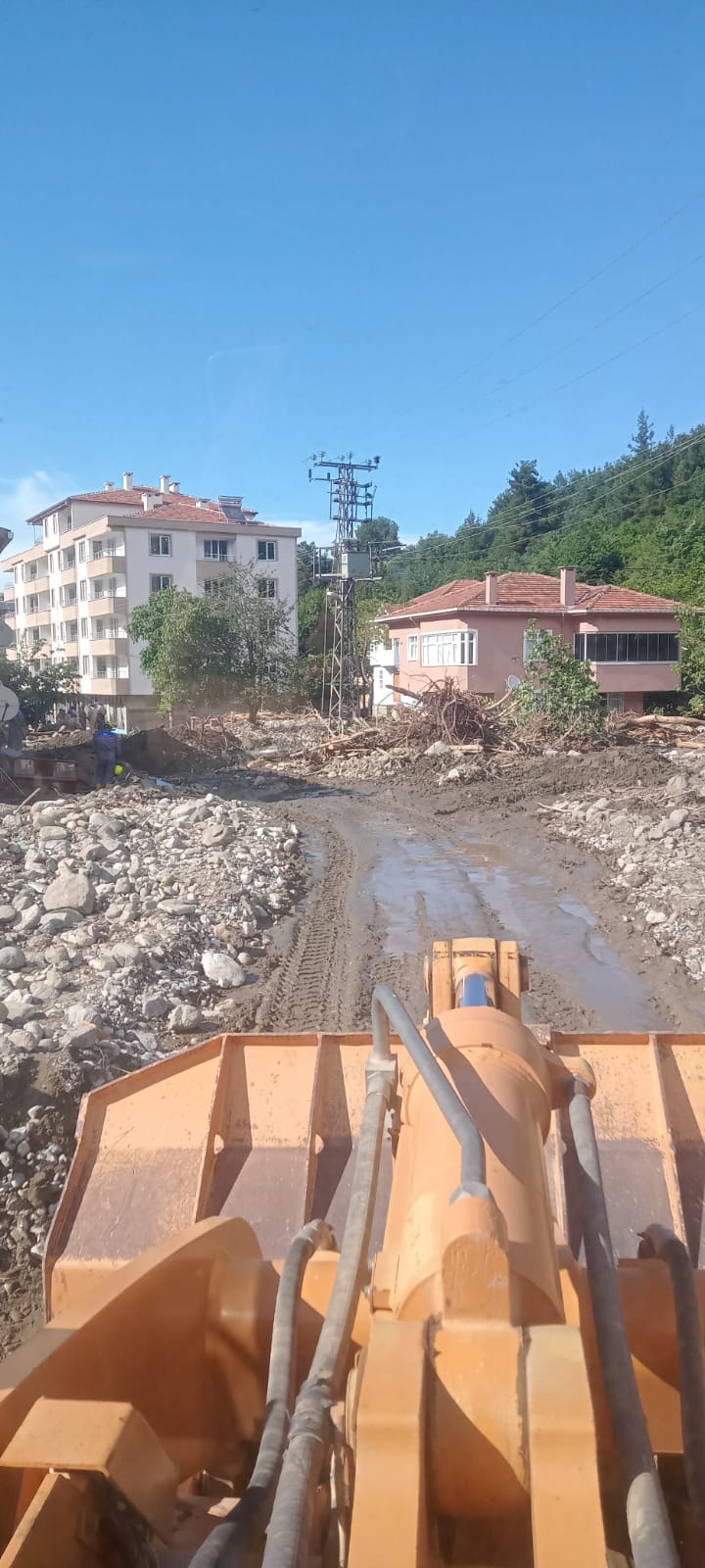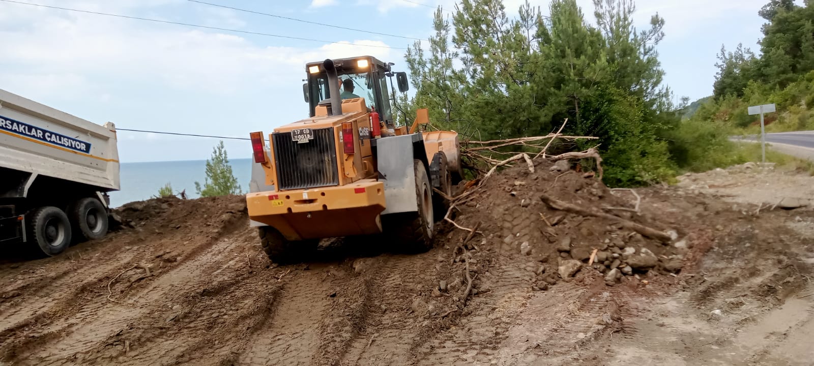 Görevli personel ile birlikte lowbede yüklenerek yola çıkan iş makinesi AFAD koordinesinde, Kastamonu'nun Abana İlçesine bağlı İlişi Köyü'nde selin meydana getirdiği hasarların giderilmesi amacı ile gerçekleştirilen çalışmalara destek oluyor.