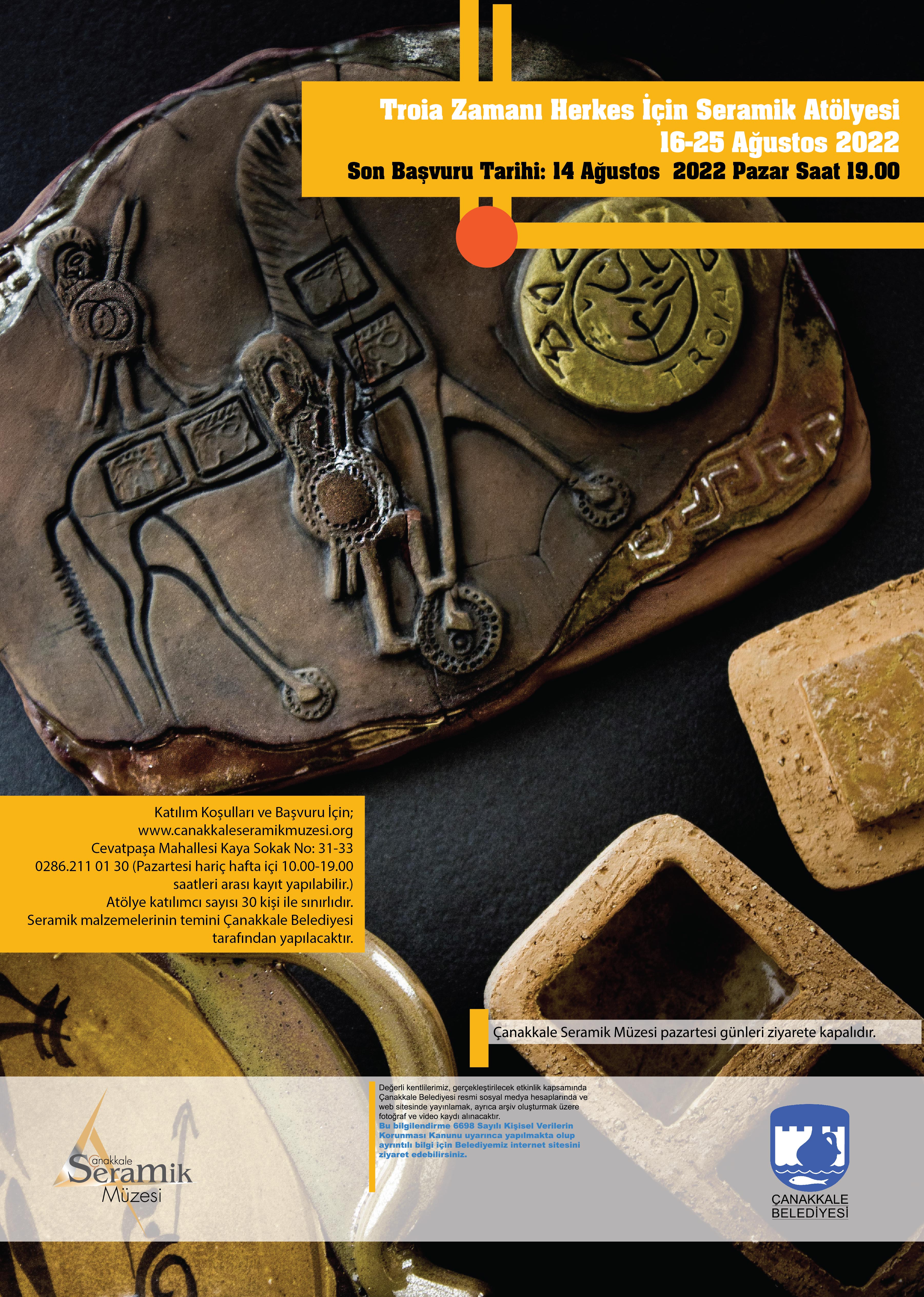 Çanakkale Seramik Müzesi tarafından 16-25 Ağustos 2022 tarihleri arasında Herkes İçin Seramik Atölyeleri düzenleniyor. Atölye çalışmasıyla kent yaşamını paylaşan herkesin seramik sanatıyla uygulamalı olarak tanışması, sanatsal bir üretimin içinde olmasını amaçlıyor.