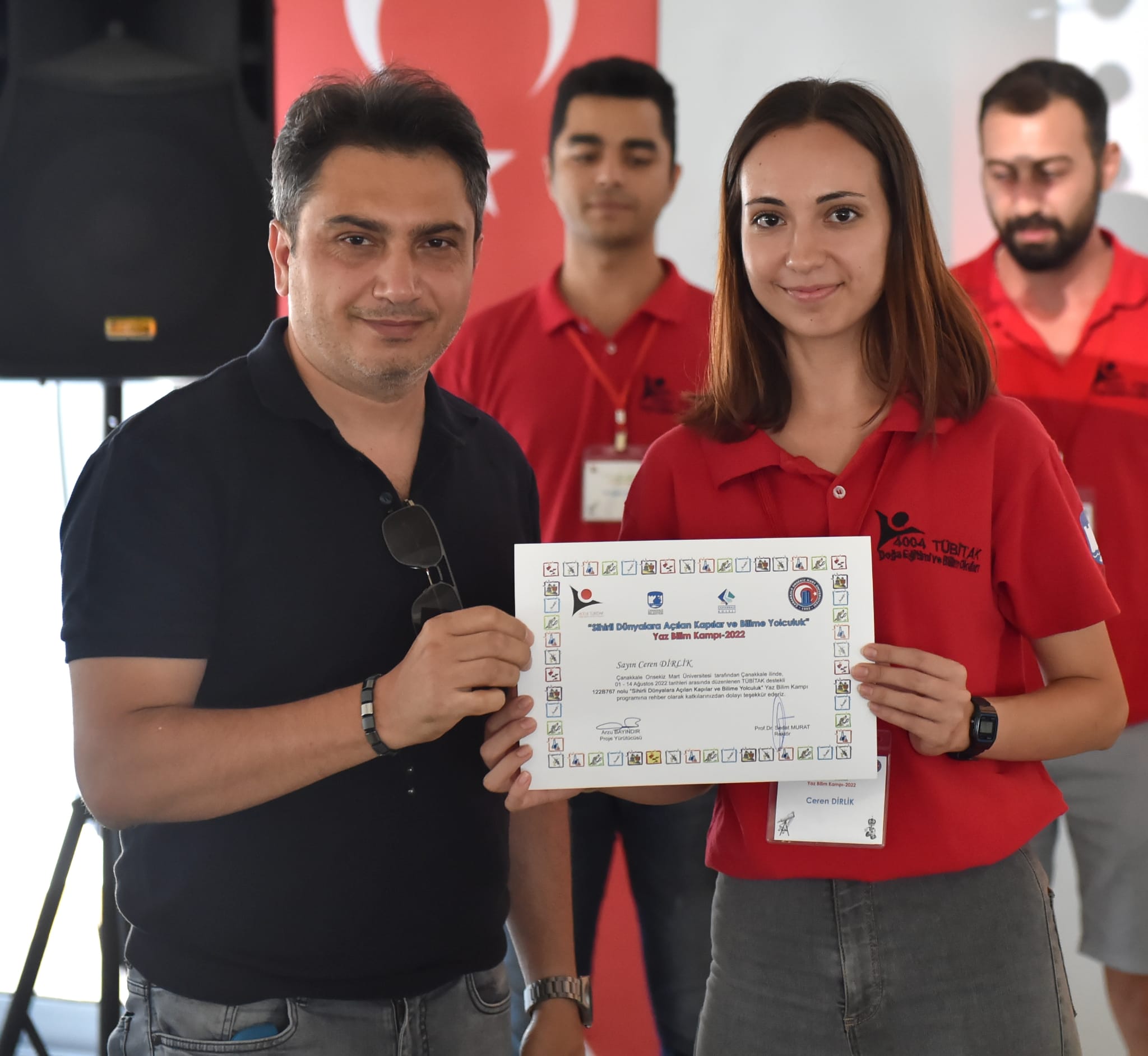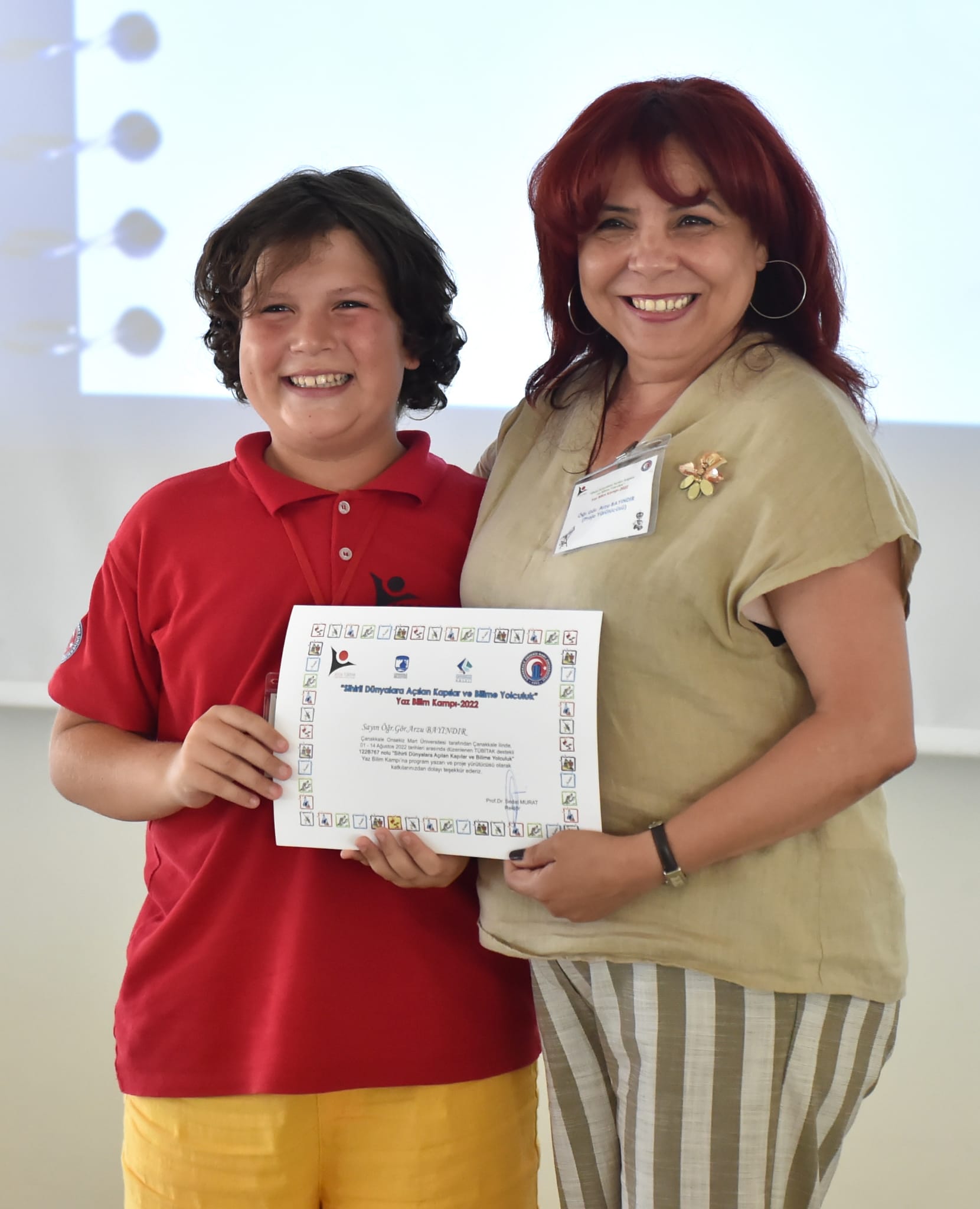 Yaz Bilim Kampı sertifika töreninde konuşan Proje yöneticisi Öğr. Gör. Arzu Bayındır; Bilim Kampının amacının, 7. sınıfa geçmiş katılımcı öğrencilerin fen ve sosyal bilimler alanlarına yönelik; popüler bilimle tanışmalarını, yaşamla içi çeliğini tanımalarını, bilimin her yerde ve eğlenceli bir alan olduğu gerçeği ile bilimsel farkındalıklarını sağlamak ve bilimin yaşamımız üzerine etkilerini ve bilimin yaşamımızı nasıl doğru yönlendirdiğini sezdirmek ve yaşamlarında problem çözme, analiz ve sentez yapabilme düşünsel becerilerinin de geliştirilmesi olduğunu ifade etti. Projenin 2007 yılından bu yana düzenlendiğini TÜBİTAK 4004 kodlu Doğa Eğitimi ve Bilim Okulları Destekleme Programının 16. Yılında 11. kez desteklenerek sürdürülebilirliğini koruyan, yaygın etki bakımından en fazla öğrenci kitlesine ulaşan proje olduğunu belirtti.