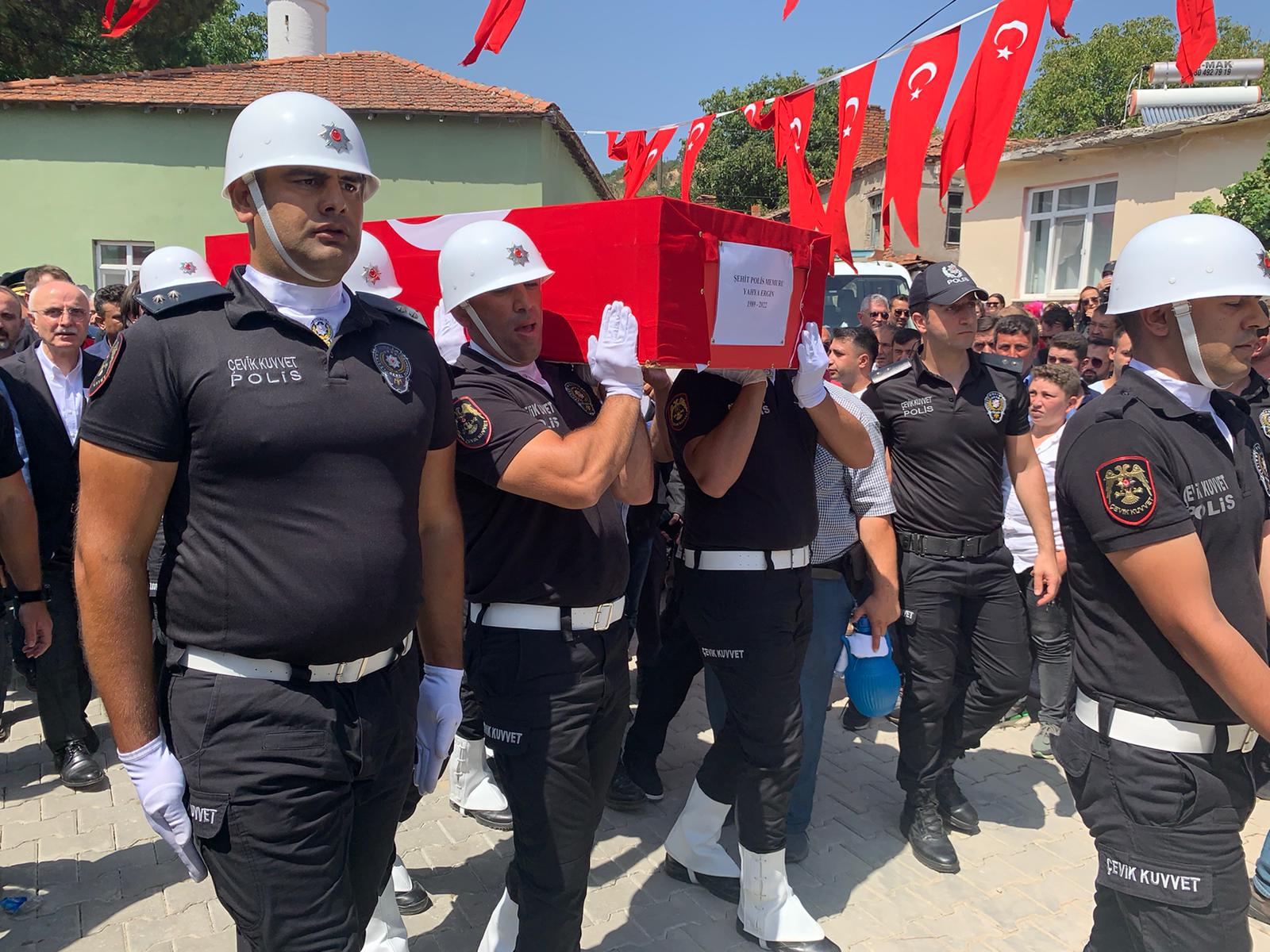 Mardin’de gerçekleşen kazada, görevi başında yaşamını yitiren Şehit Polis Memuru Yahya Ergin, memleketi Ezine’de son yolculuğuna uğurlandı.