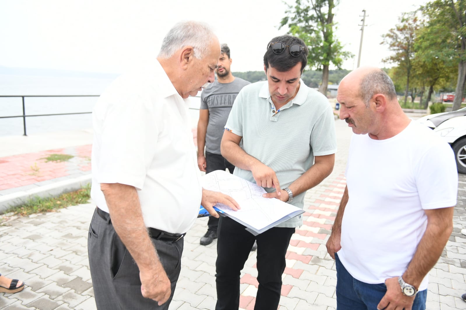 Güzelyalı'daki çalışmaların yanı sıra yapılması planlanan düzenlemelere ilişkin incelemelerde bulunan Başkan Gökhan, Belediye Başkan Yardımcıları ve teknik ekip ile birlikte yeni projelere ilişkin görüş alışverişinde bulundu. Sahil düzenlemelerini de yerinde inceleyen Başkan Gökhan, çalışmalar hakkında bilgi aldı.