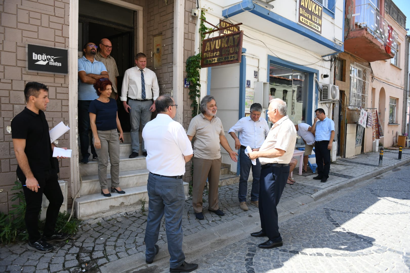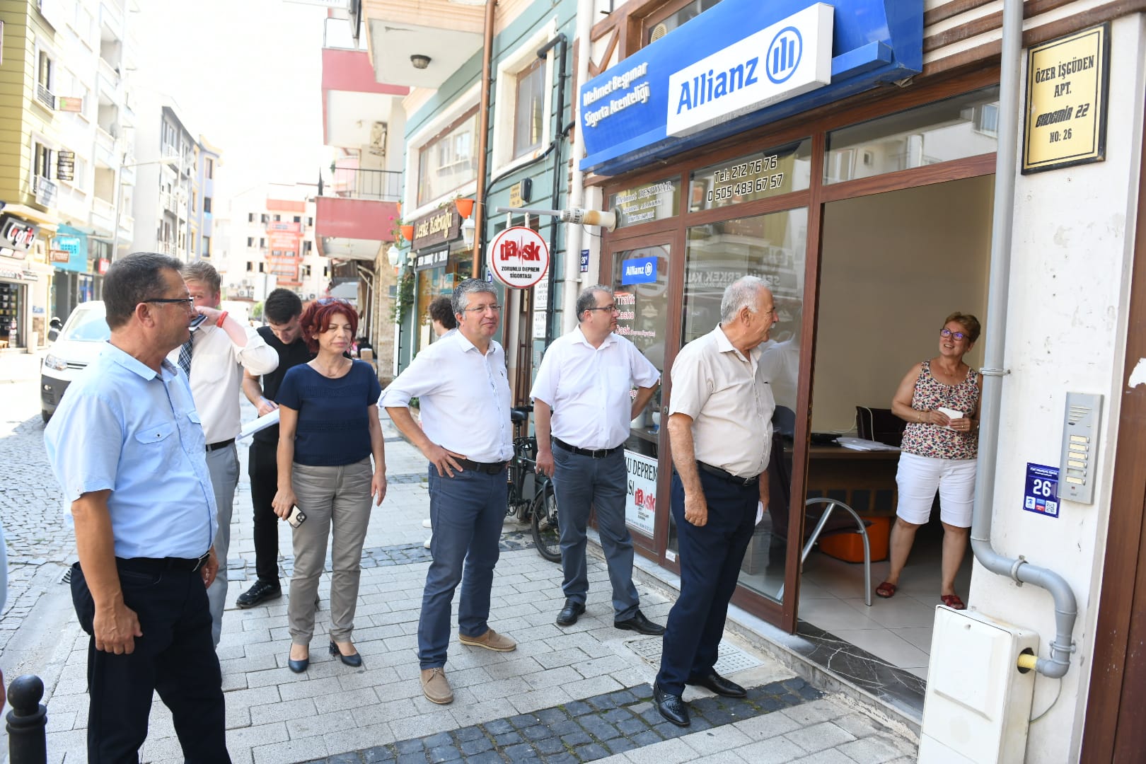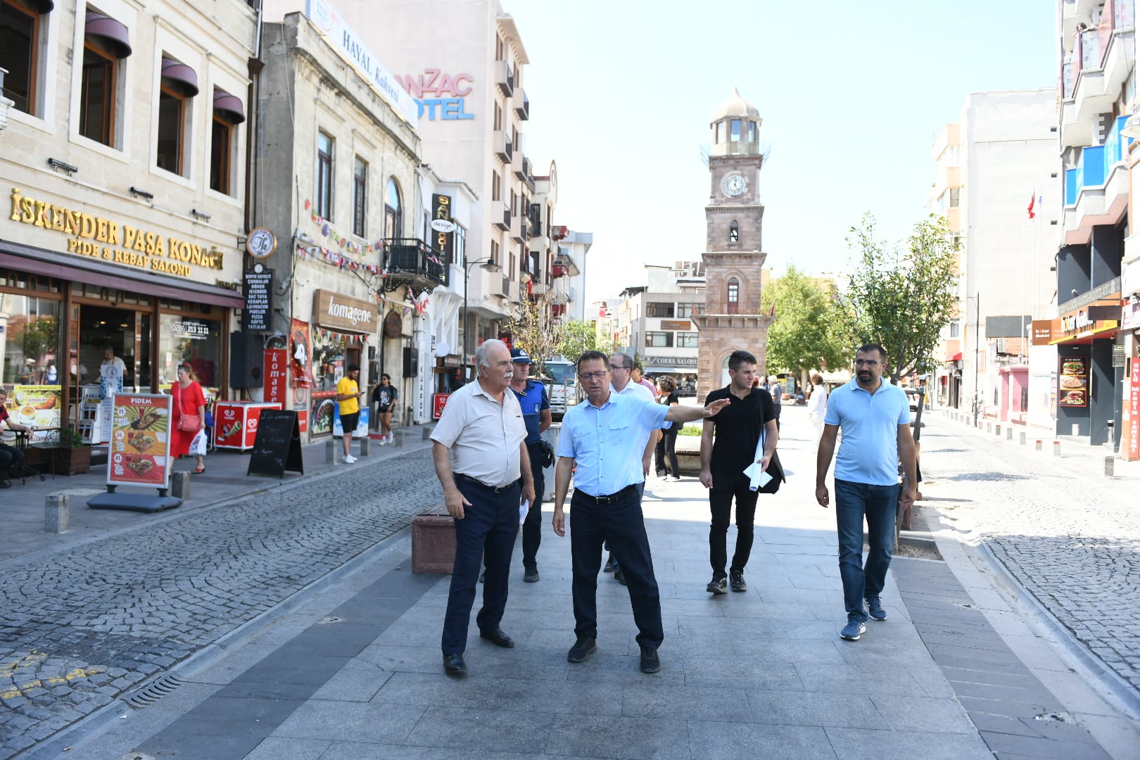 Başkan Gökhan ardından çarşı bölgesinde planlanan yayalaştırma çalışmalarına ilişkin teknik ekip eşliğinde incelemelerde bulundu. Çarşı bölgesinde araç trafiğine kapatılacak ve açık kalacak sokak ve caddeleri gezerek, yapılması planlanan düzenlemeleri yerinde inceleyen Başkan Gökhan, planlanan düzenlemelere ilişkin teknik ekip ile birlikte görüş alışverişinde bulundu. İnceleme gezisinde esnaf ile de sohbet eden Başkan Gökhan, yaylaştırma çalışması kapsamında bölgede yapılacak düzenlemelere ilişkin bilgilendirmede bulunarak, esnaftan gelen talepleri de dinledi.