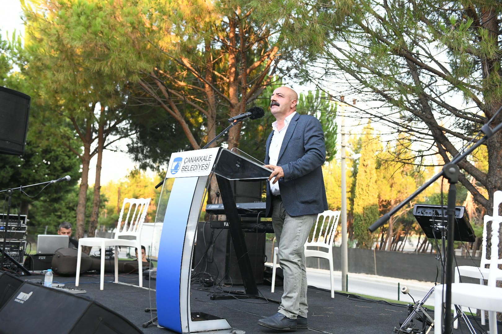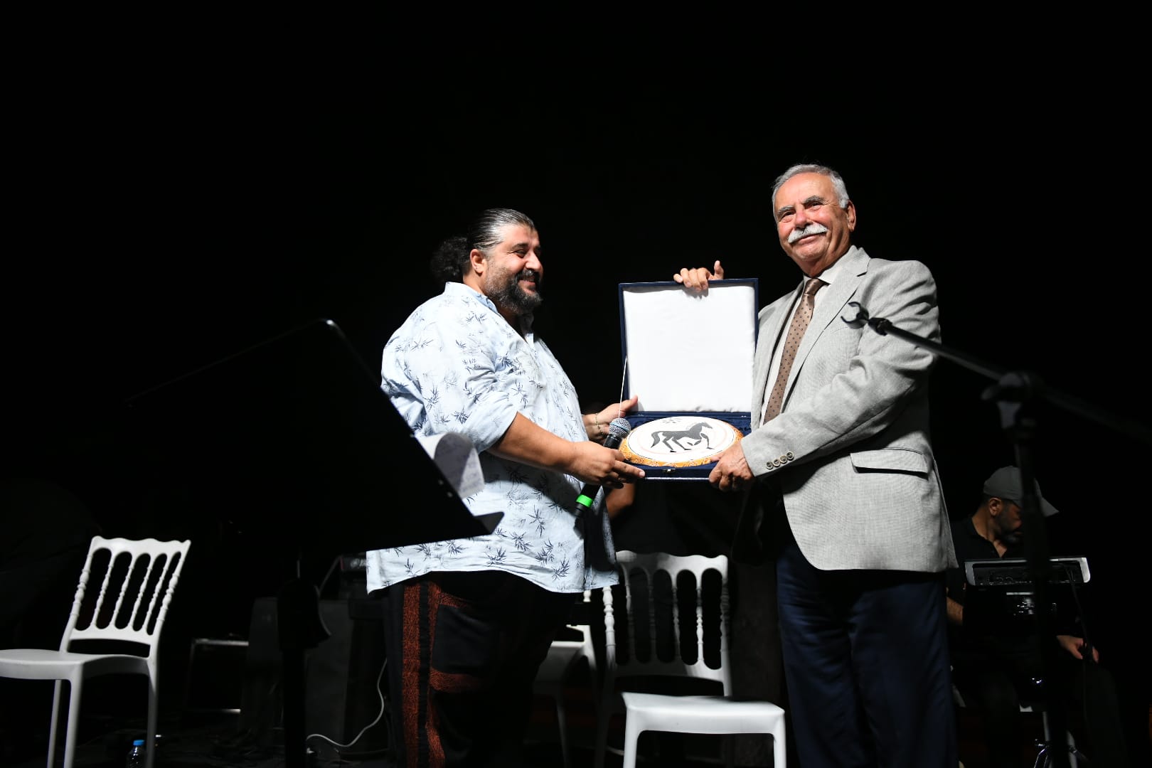 Kentlilerin halaylar ile keyifli bir akşam yaşadığı konser sonunda, Başkan Gökhan kentlilere müzik dolu bir gece yaşatan Mustafa Özarslan'a teşekkür ederek, Çanakkale seramiği takdim etti.