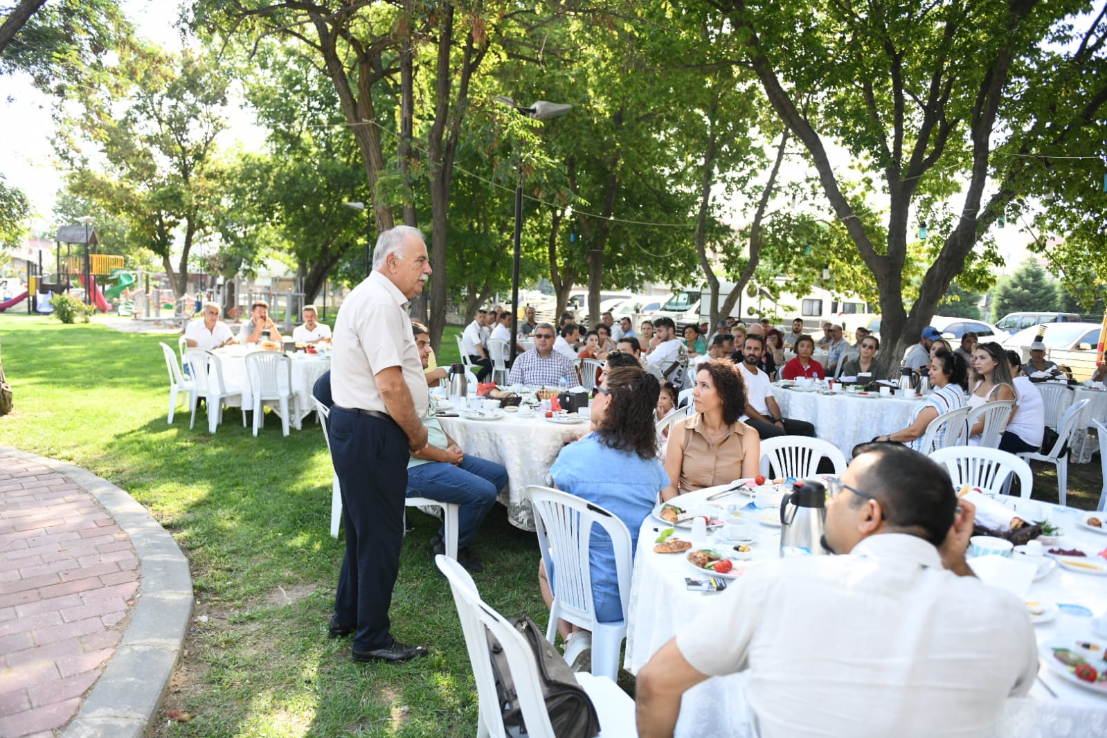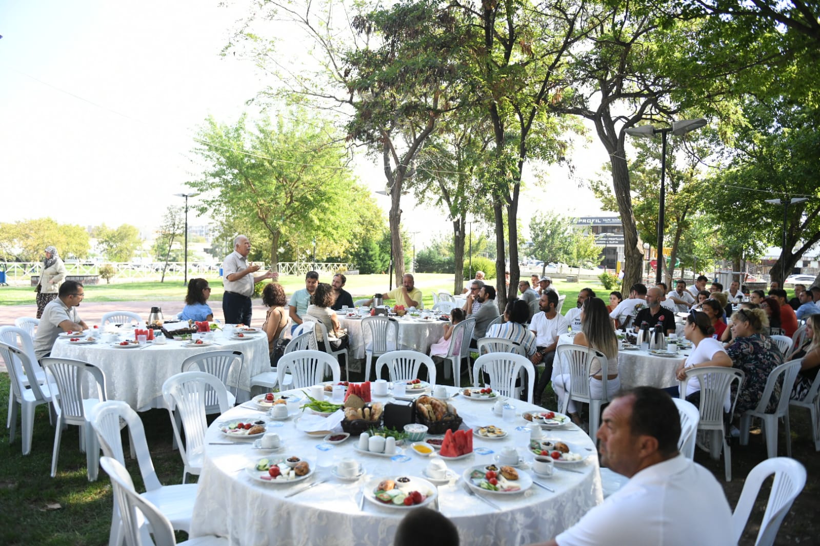 Belediye Çalışanları Sosyal Tesisleri'nde 2 Eylül 2022 Cuma günü düzenlenen kahvaltı etkinliğine Belediye Başkanı Ülgür Gökhan, eşi Hale Gökhan, Belediye Başkan Yardımcısı Rebiye Turan Ünüvar, birim müdürleri ve festivalde görev alan belediye personelleri katıldı. Sohbet ortamında geçen programda festival boyunca büyük bir özveri ile çalışan belediye personellerine teşekkürlerini ileten Başkan Gökhan;