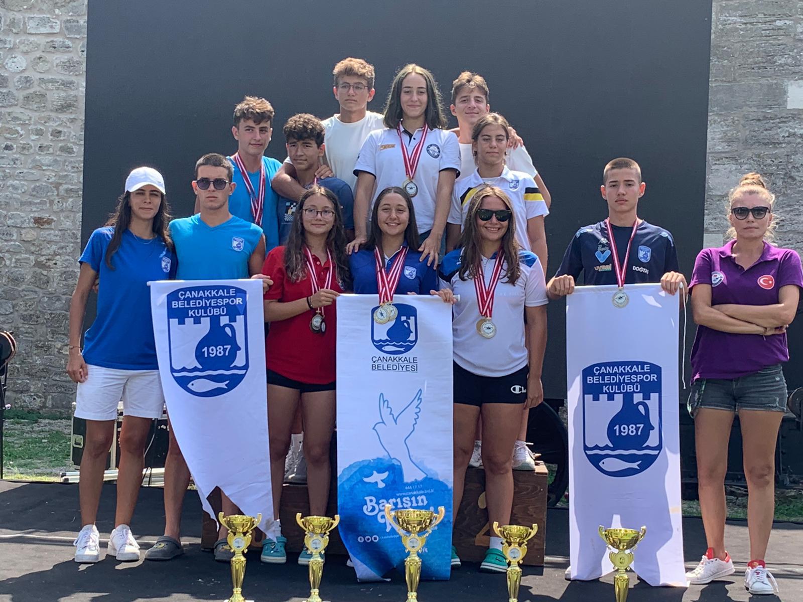 Bu yıl 35.’si düzenlenen yüzme yarışında her yıl olduğu gibi bu yıl da Çanakkale Belediyespor’un yüzücüleri damga vurdu. 820 sporcunun katılım gösterdiği yarışmada genel klasman, kadınlar ve erkekler genel klasman ve yaş kategorilerinde büyük başarı elde eden Çanakkale Belediyespor yüzücüleri, en hızlı yüzenler olarak birinci, ikinci ve üçüncülük kupalarının sahipleri oldu.