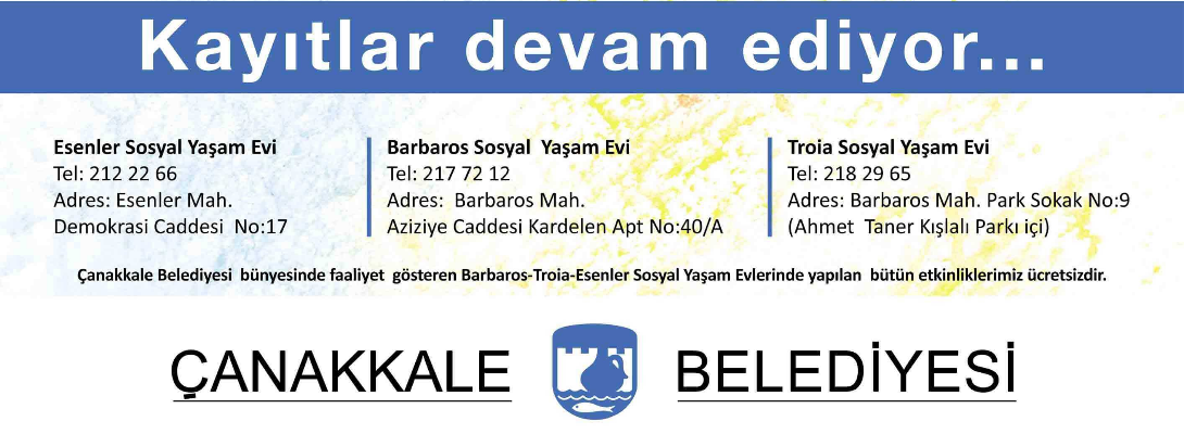 Çanakkale Belediyesi Troia, Barbaros ve Esenler Sosyal Yaşam Evleri’nde, yetişkinlere ve çocuklara yönelik düzenlenen ücretsiz etkinlikler, atölye ve grup çalışmaları için yeni dönem kayıtları 5 Eylül 2022 Pazartesi günü itibariyle başladı.