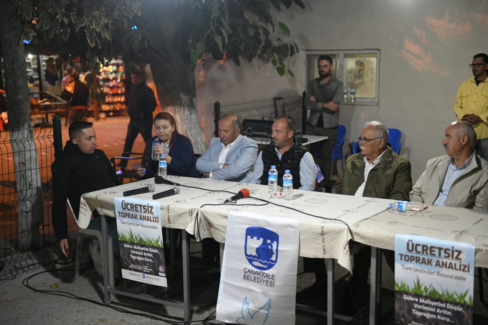 Belediye Başkanı Ülgür Gökhan, Çanakkale Belediyesi Yerel Kalkınma Biriminin üreticileri desteklemek amacı ile ürettiği projeler kapsamında hayata geçirdiği “Ücretsiz Toprak Analizi” projesini tanıtmak amacı ile düzenlediği köy toplantılarına devam ediyor.