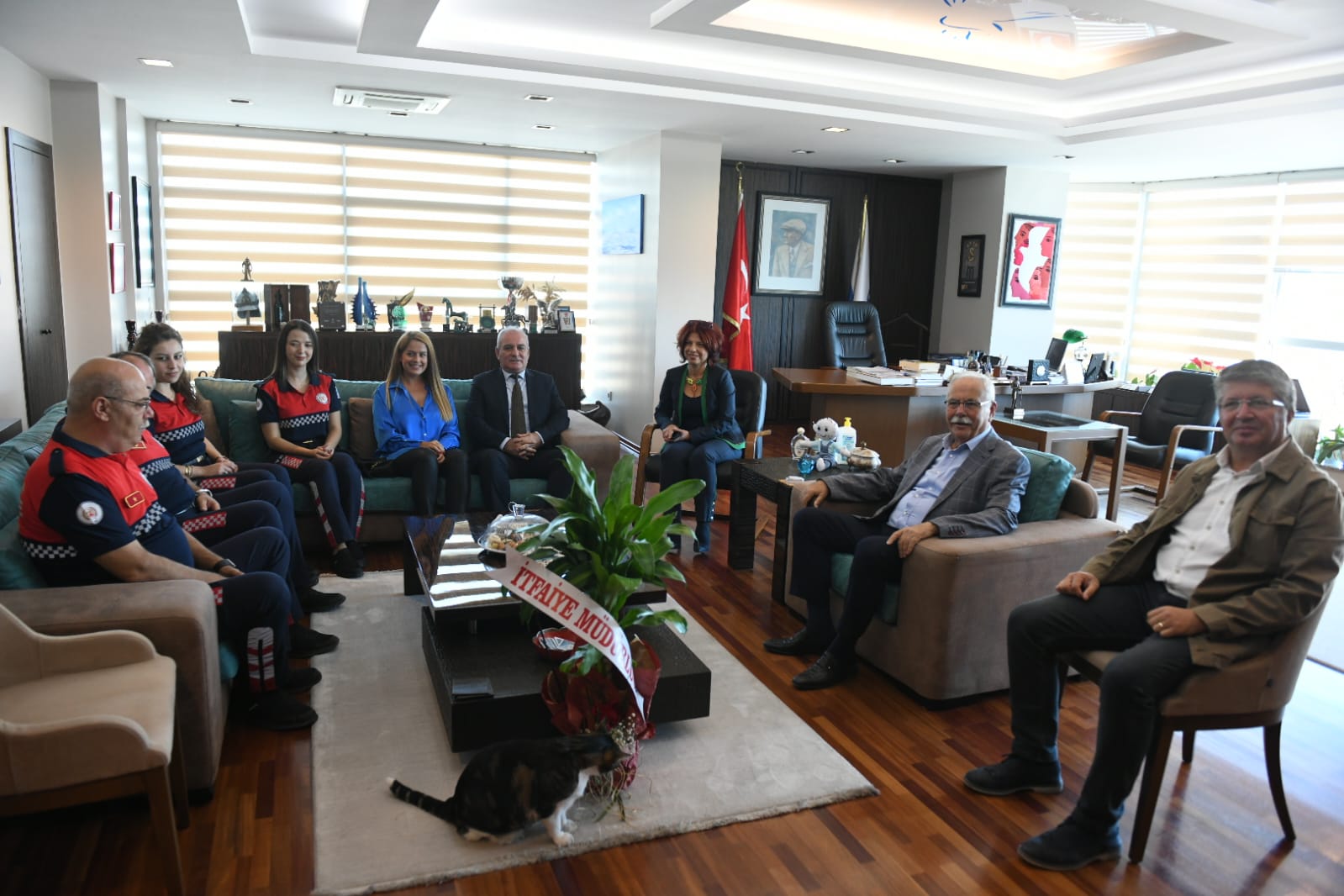 Başkan Gökhan hafta dolayısıyla ilk olarak itfaiye personeli ile makamında bir araya geldi. Ziyaret nedeni ile memnuniyetini dile getiren Başkan Gökhan İtfaiye Müdürü Olcay Runa ve personelin İfaiye Haftasını kutladı. Belediye Başkan Yardımcıları Handan Özyayla Kenar ve M. İrfan Mutluay'ın da eşlik ettiği ziyarette Başkan Gökhan, Runa'dan İtfaiye Müdürlüğü faaliyetleri hakkında bilgi aldı.