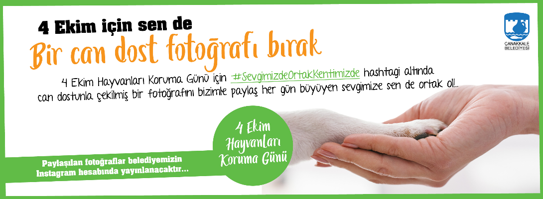 4 Ekim Hayvanları Koruma Günü için #SevgimizdeOrtakKentimizde hastagi altında can dostunla çekilmiş bir fotoğrafını bizimle paylaş her gün büyüyen sevgimize sen de ortak ol.