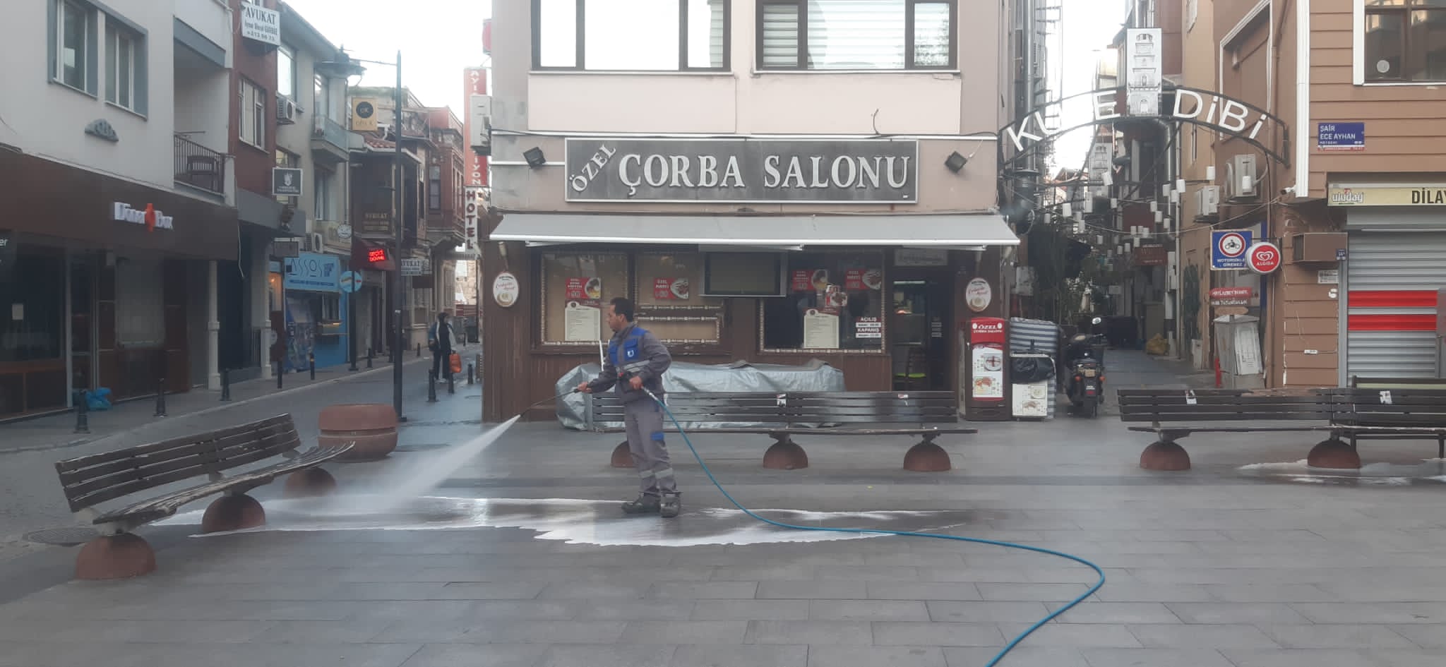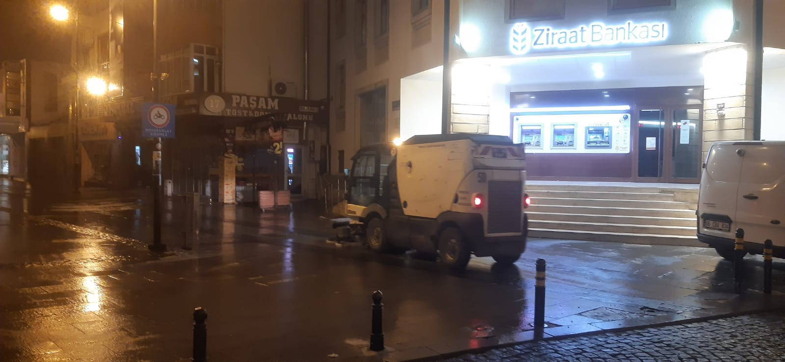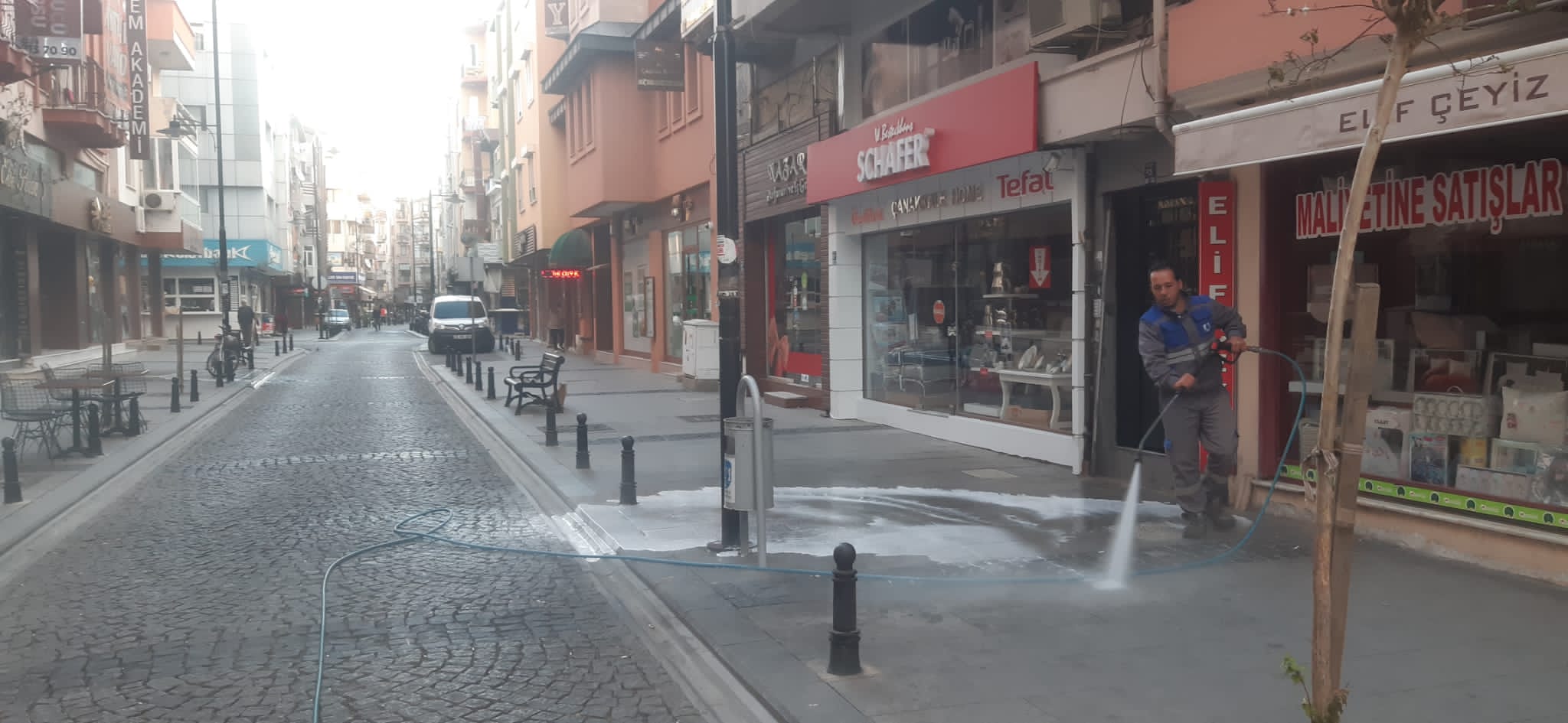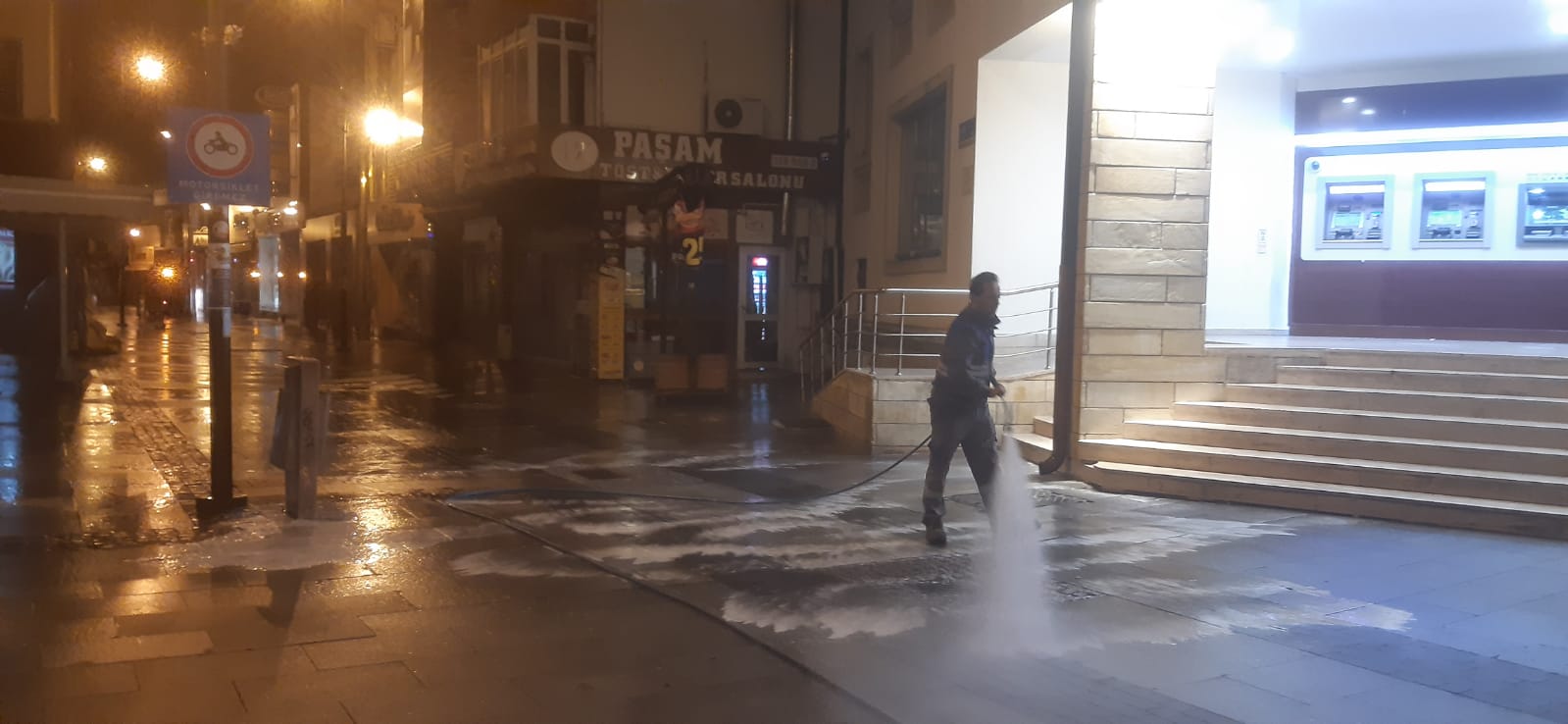 Kent genelinde aralıksız gerçekleştirilen temizlik çalışmaları doğrultusunda Temizlik İşleri Müdürlüğü ekipleri, çarşı bölgesinde çöp toplama çalışmasının ardından çöp sepetleri ve konteynerleri ile çevrelerini basınçlı su ile temizledi.