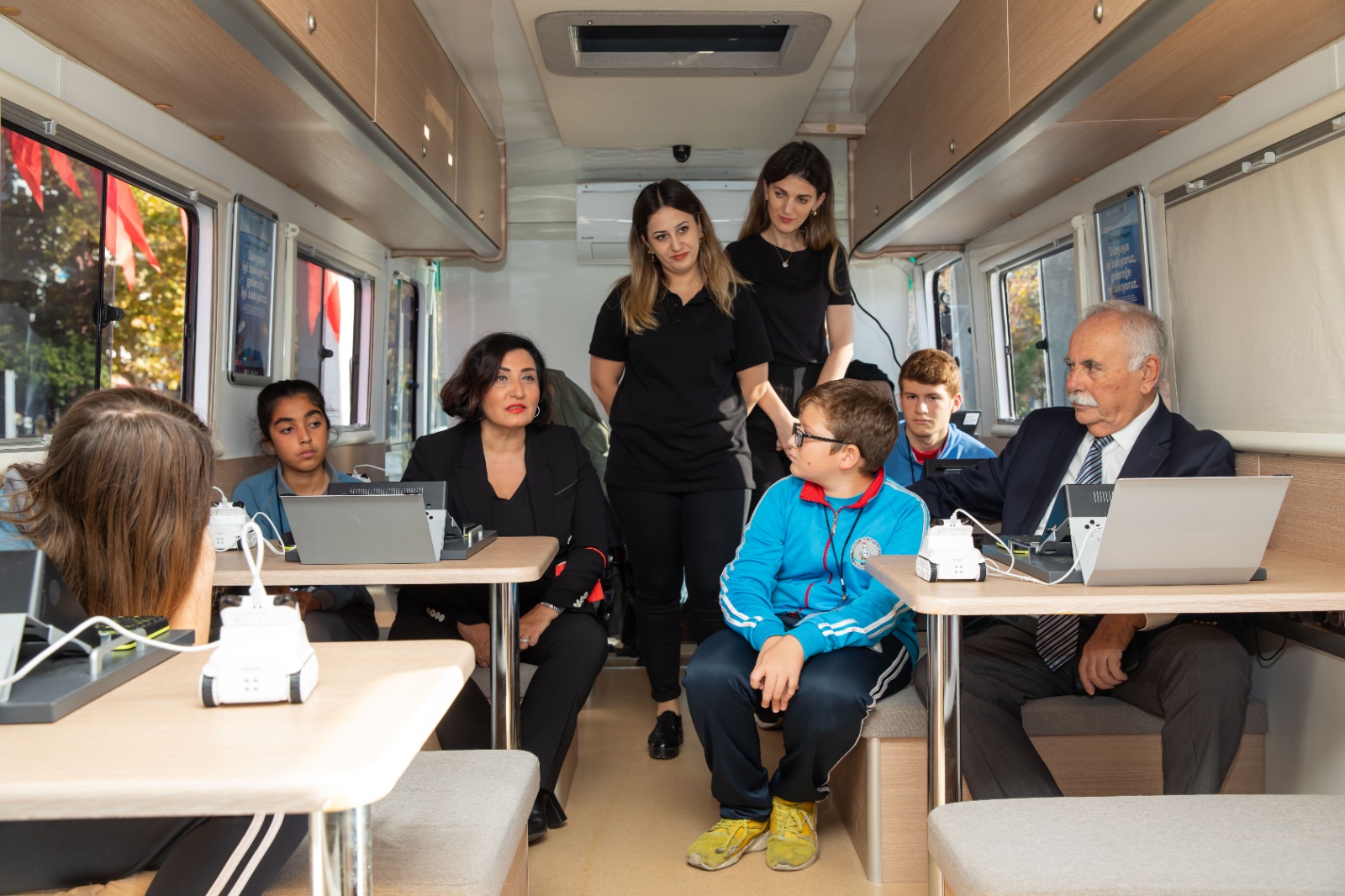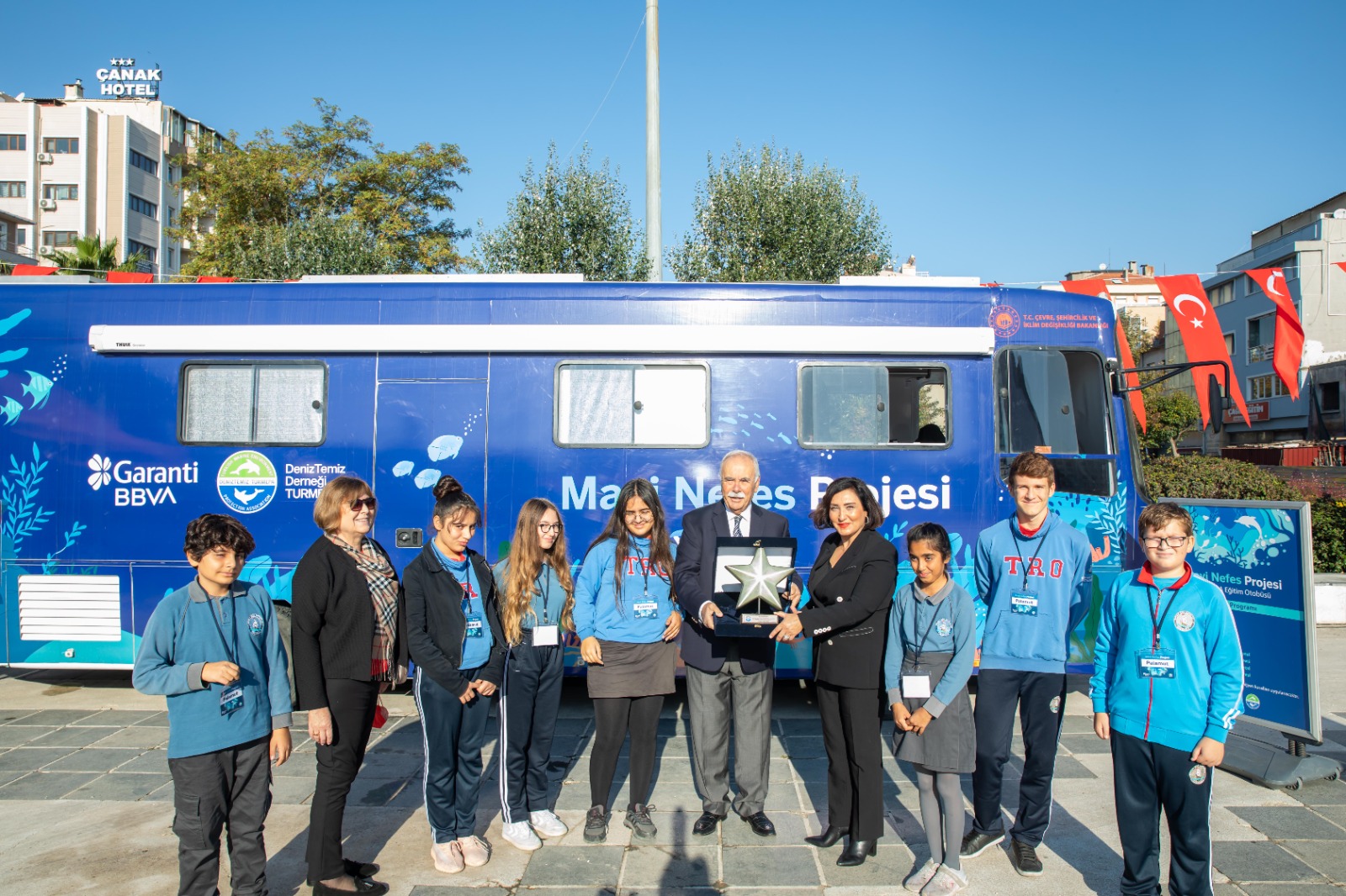 Belediye Başkanı Ülgür Gökhan, Deniz Temiz Derneği TURMEPA tarafından düzenlenen Mavi Nefes Eğitim Otobüsünü ziyaret etti.