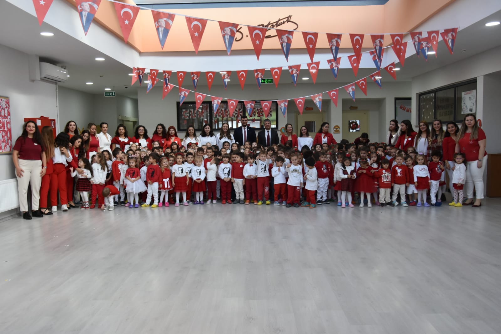 Atam Kreş'te geleneksel hale gelen Cumhuriyet Bayramı kutlama programı, saygı duruşu ve İstiklal Marşı'nın okunması ile başladı. Program kapsamında Minikler, ellerindeki bayraklarla marşlar söyleyerek bayramın coşkusunu birlikte yaşadı. Renkli görüntülerin oluştuğu programa Belediye Başkan Yardımcısı M. İrfan Mutluay, Atam Kreş ve Gündüz Bakımevi yöneticileri ile öğretmenleri de katılarak çocukların coşkularına ortak oldu.