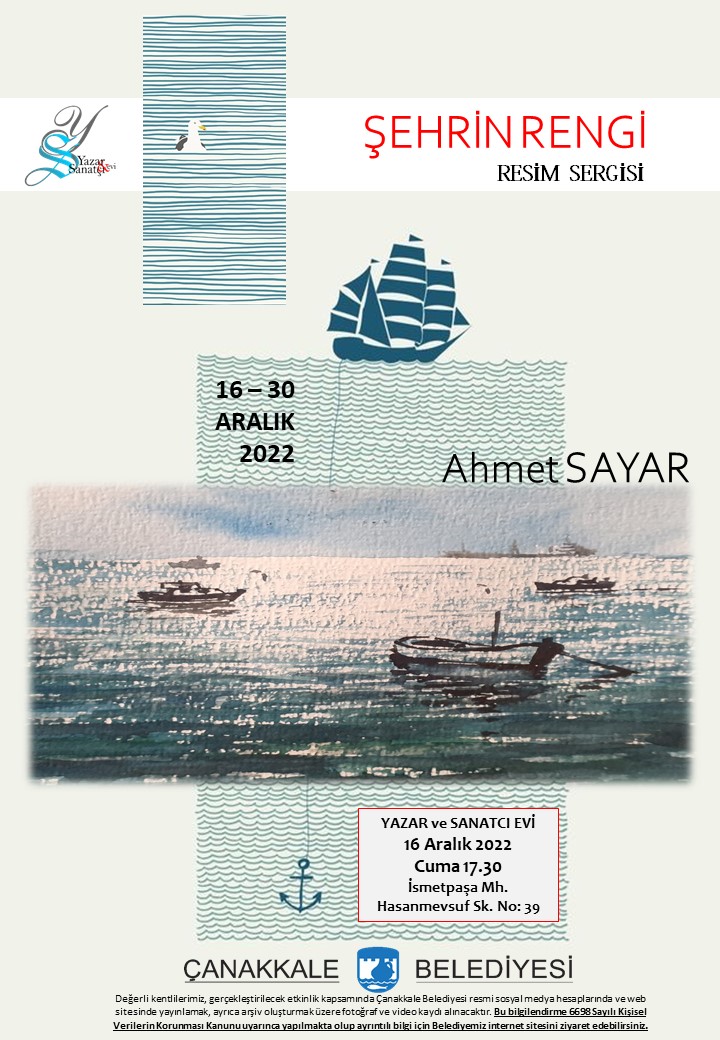 Aralık ayının bir diğer sergi etkinliği ise Ahmet Sayar'ın “Şehrin Rengi” isimli resim sergisi olacak. Sergi, Yazar ve Sanatçı Evi'nde 16 Aralık 2022 Cuma günü saat 17.30'da ziyaretçilere kapılarını açacak ve 30 Aralık 2022 tarihine kadar devam edecek.