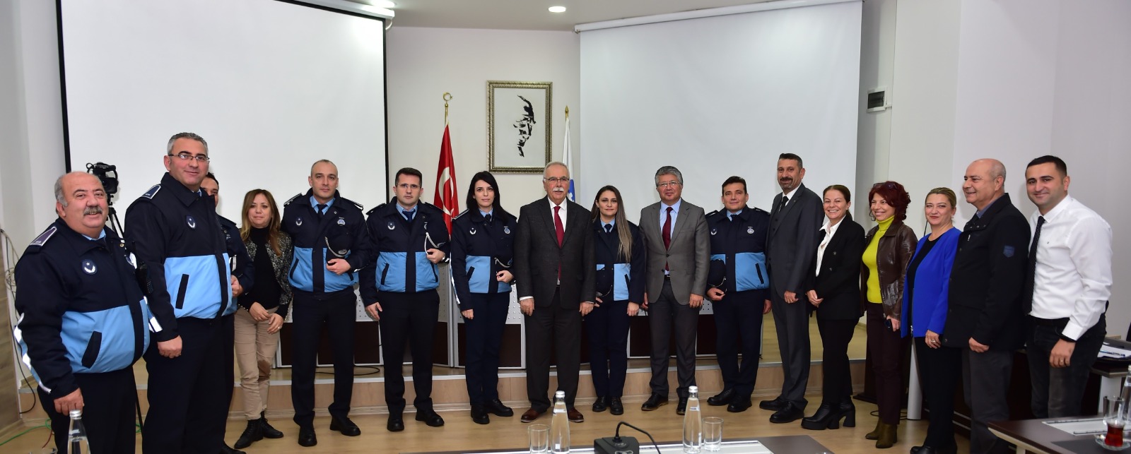 Belediye Meclis Salonunda düzenlenen Görevde Yükselen Zabıta Memurlarına Rozet Takma Törenine ise, Belediye Başkanı Ülgür Gökhan, Belediye Başkan Yardımcıları Handan Özyayla Kenar, Rebiye Turan Ünüvar ve M. İrfan Mutluay başta olmak üzere ilgili birim müdürleri ve zabıta memurları katıldı.