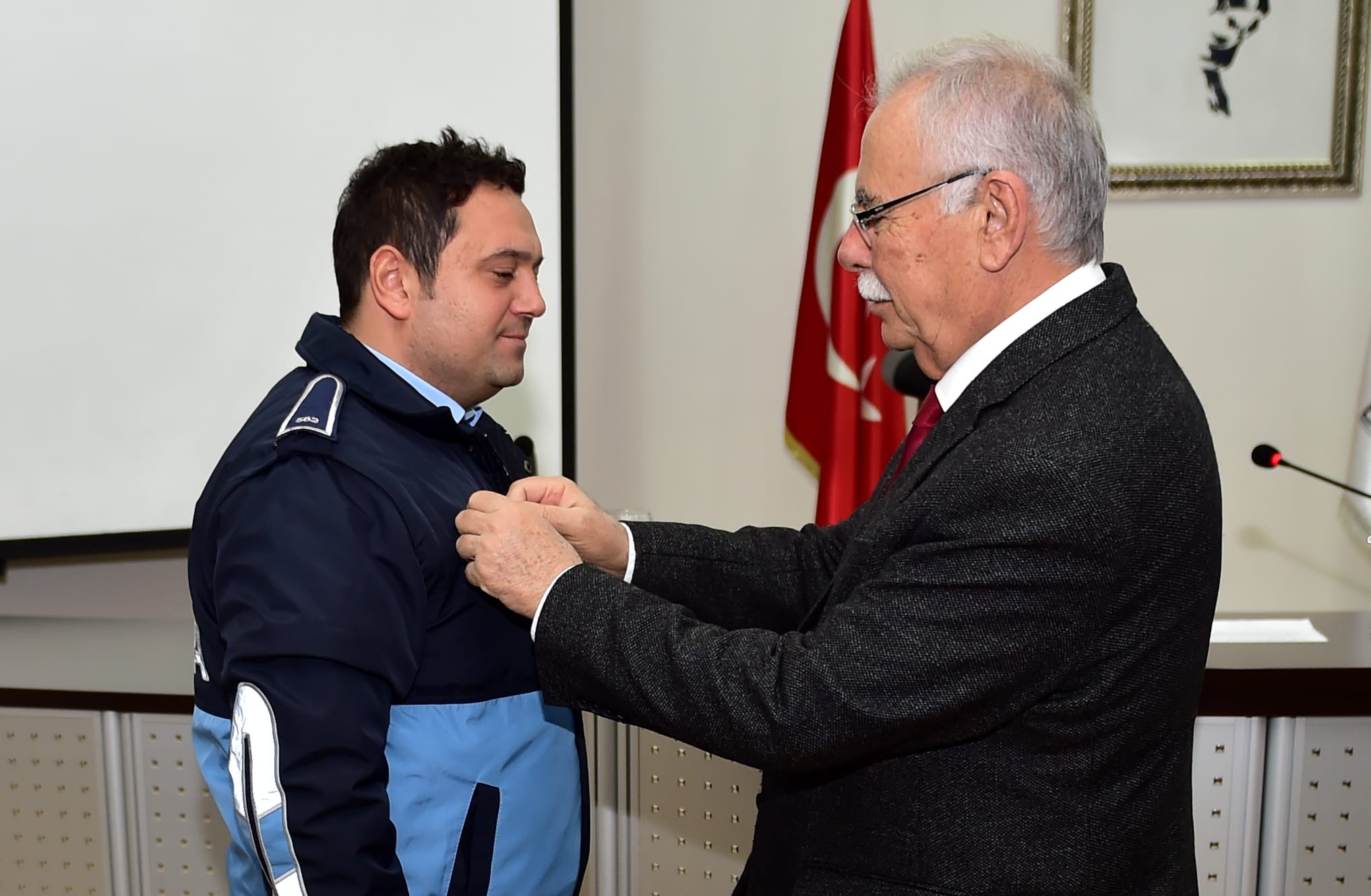 Başkan Gökhan törende yaptığı konuşmada, kent huzuru için son derece önemli görev üstlenen memurların, bundan sonra da güler yüz ile mevzuata uygun ve hem belediye hem de kente yakışan bir şekilde görevlerini sürdüreceklerinden şüphe etmediğini kaydetti. Başkan Gökhan, Görevde Yükselme Sınavında başarılı olan zabıta memurlarını tebrik ederek, rozetlerini taktı.
