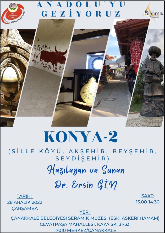 Yeni Kuşak Köy Enstitülüler Derneği Çanakkale Şubesi tarafından düzenlenen “Anadolu’yu Geziyoruz” söyleşisi, 28 Aralık Çarşamba günü saat 13:00’te Seramik Müzesi’nde gerçekleştirilecek.