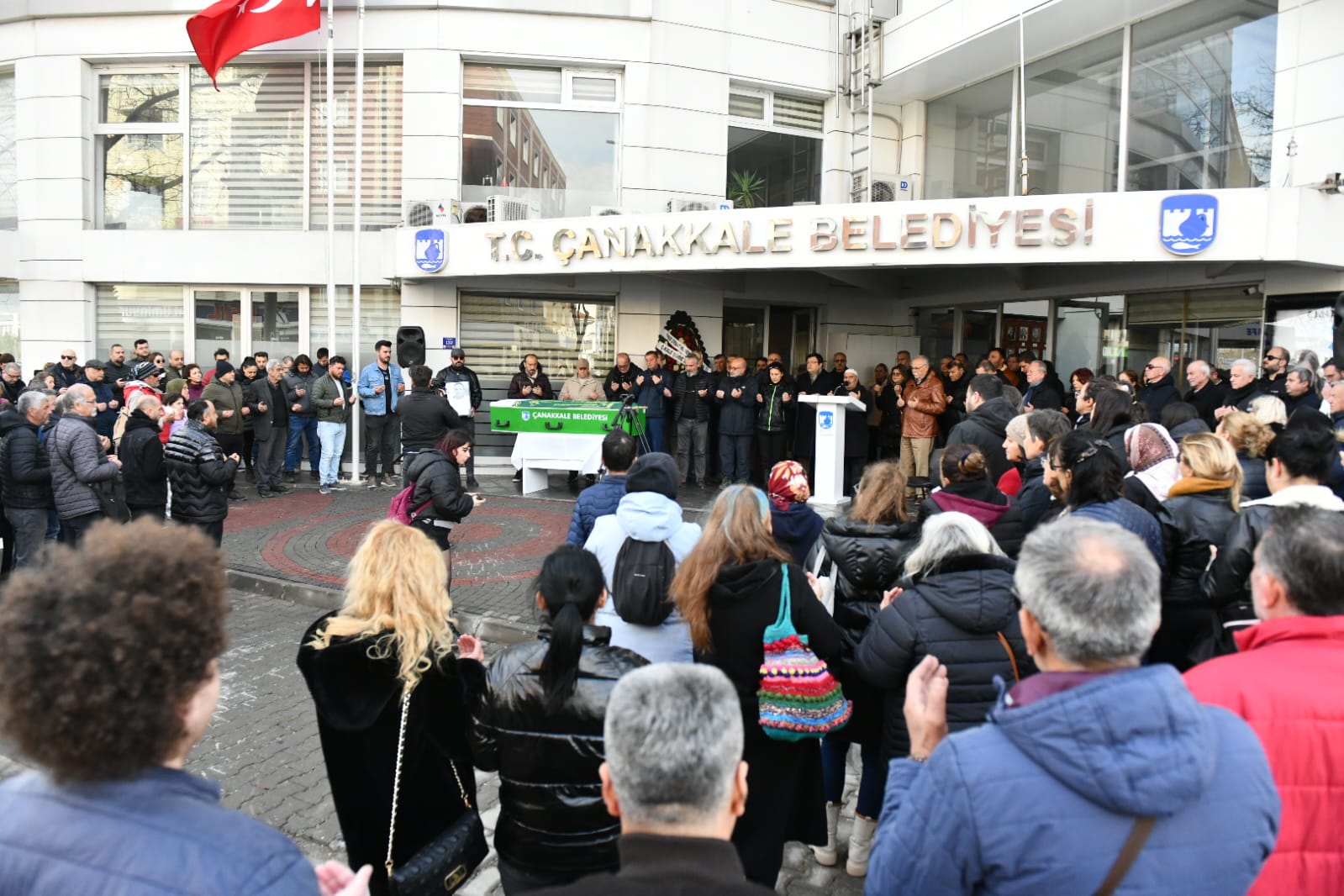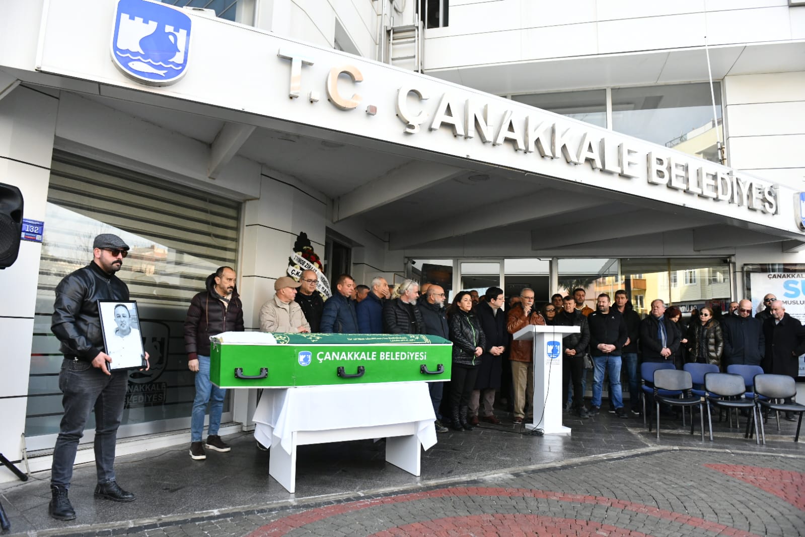 Mert Kocamaz için Çanakkale Belediyesi önünde düzenlenen törene Belediye Başkanı Ülgür Gökhan, CHP Genel Başkan Yardımcısı ve Çanakkale Milletvekili Av. Muharrem Erkek, Belediye Meclis Üyeleri, Belediye Başkan Yardımcıları, siyasi parti temsilcileri, belediye personelleri, Kocamaz ailesi, sevenleri ve yakınları katıldı.