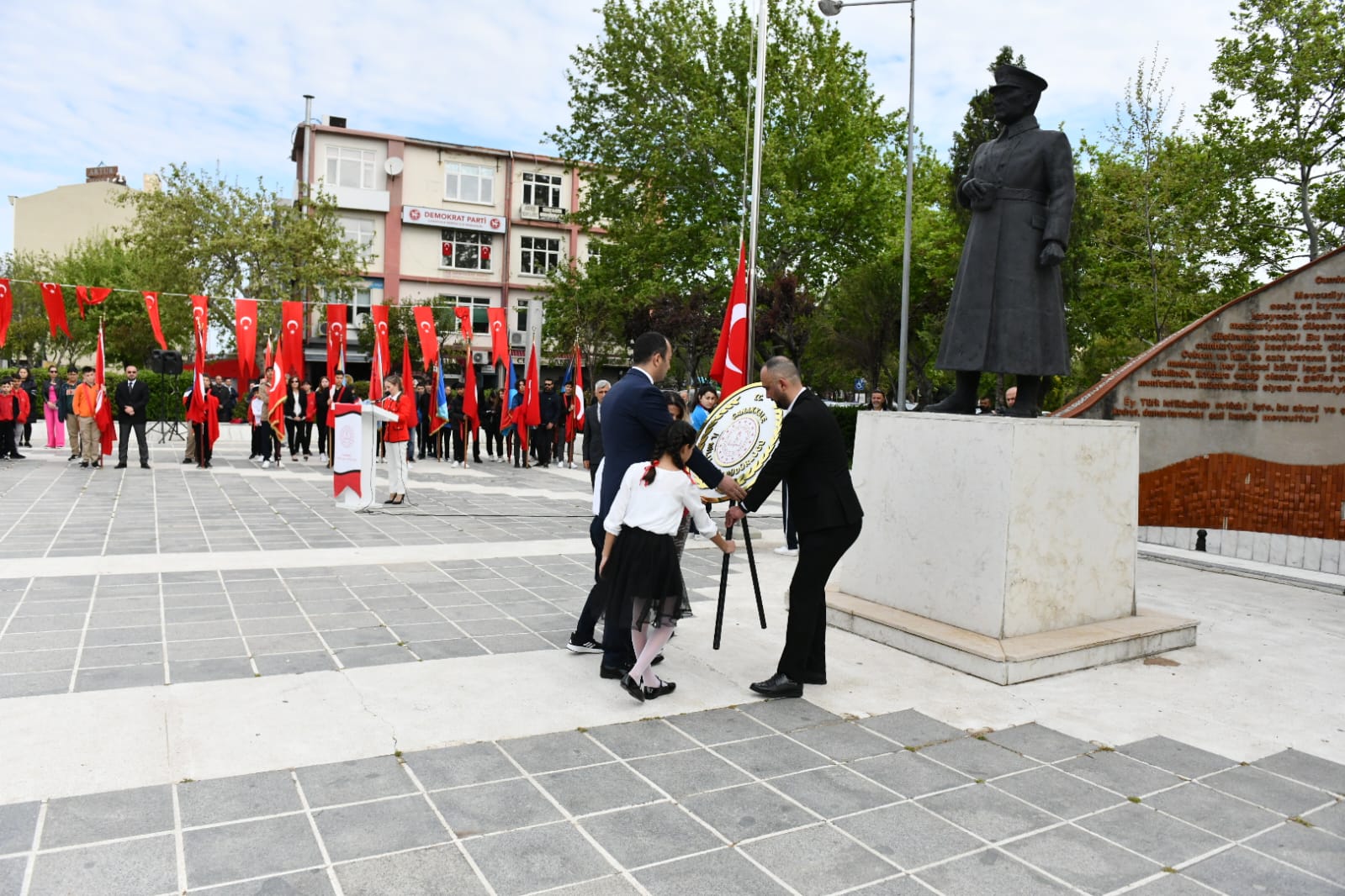 Saygı duruşu ve İstiklal Marşı'nın okunmasının ardından Atatürk Anıtına çelenk sunumu gerçekleşirken, İl Milli Eğitim Müdürü Ferhat Yılmaz, günün anlam ve önemine ilişkin bir konuşma gerçekleştirdi. Tören, öğrencilerin şiir okumalarının ardından sona erdi.