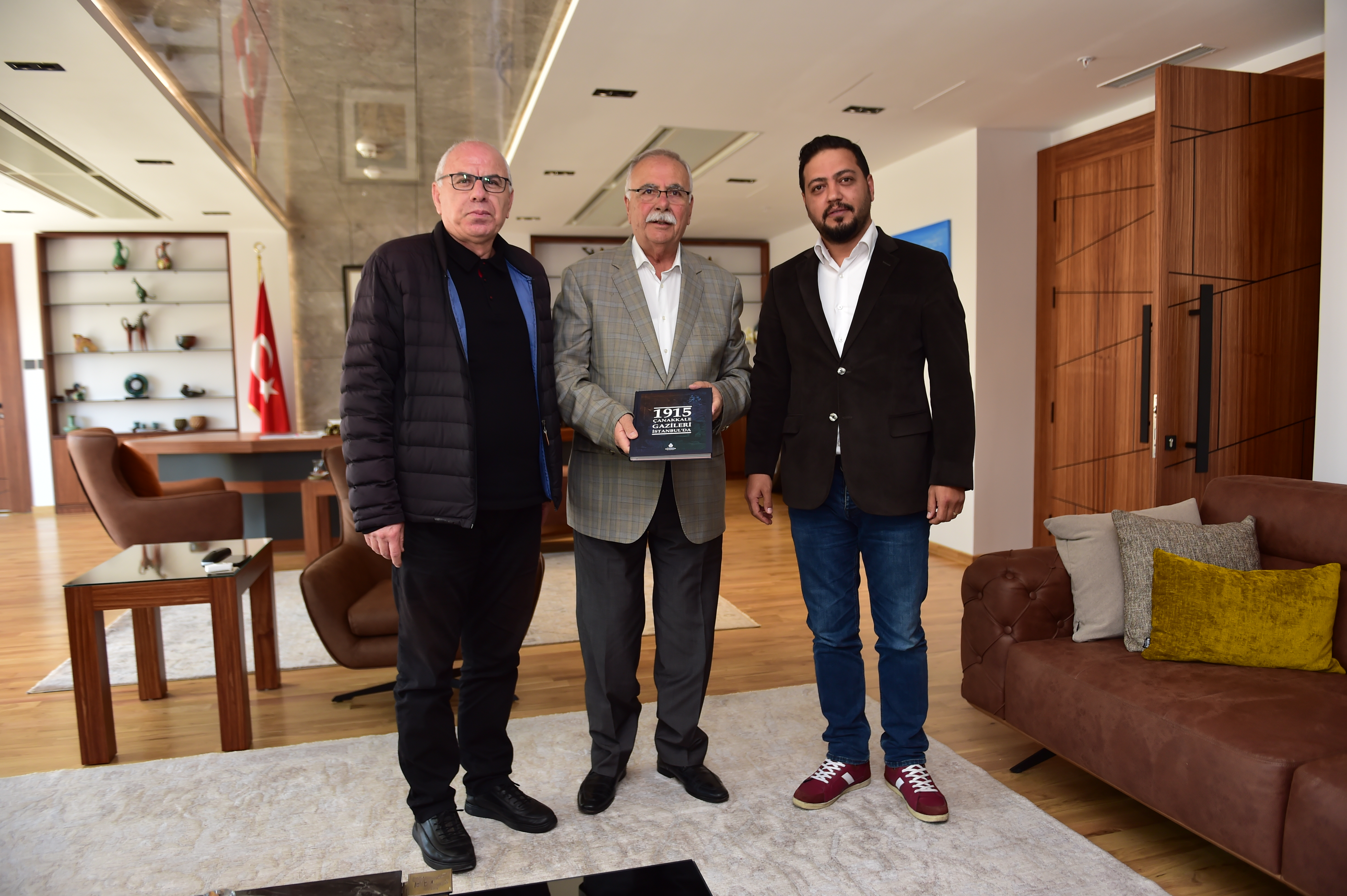 Başkanlık Makamında gerçekleşen ziyarette Prof. Dr. Murat Karataş ve Dr. Öğretim Üyesi Mithat Atabay; içerik danışmanlığını ve hazırlanmasını Çanakkale Savaşları Enstitüsü’nün üstlendiği, Çanakkale gazileri ile yapılan röportajlar doğrultusunda, onların savaş hakkındaki duygu ve düşüncelerinden yola çıkarak hazırlanan “1915 Çanakkale Gazileri İstanbul’da” isimli eseri Başkan Gökhan’a hediye etti.