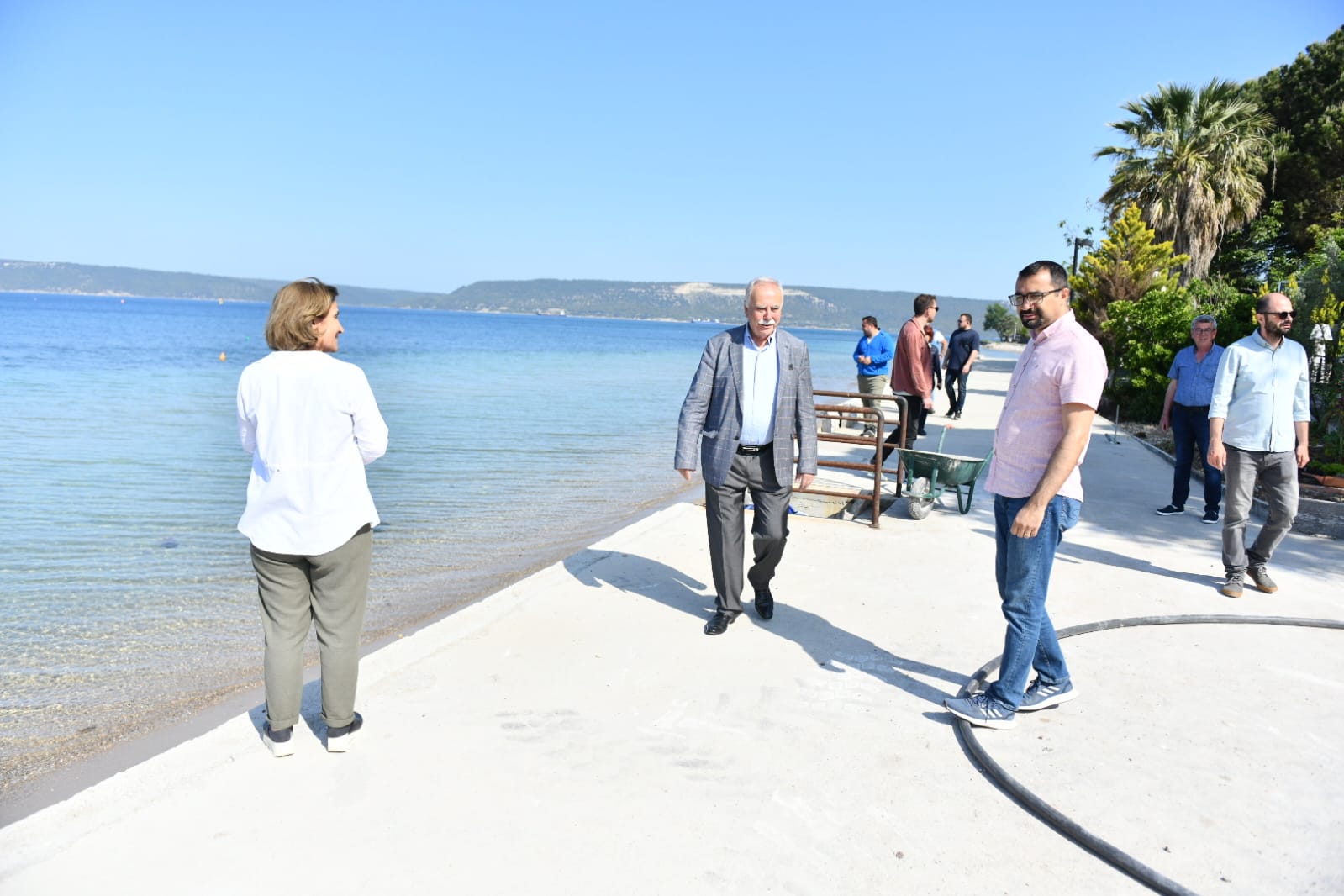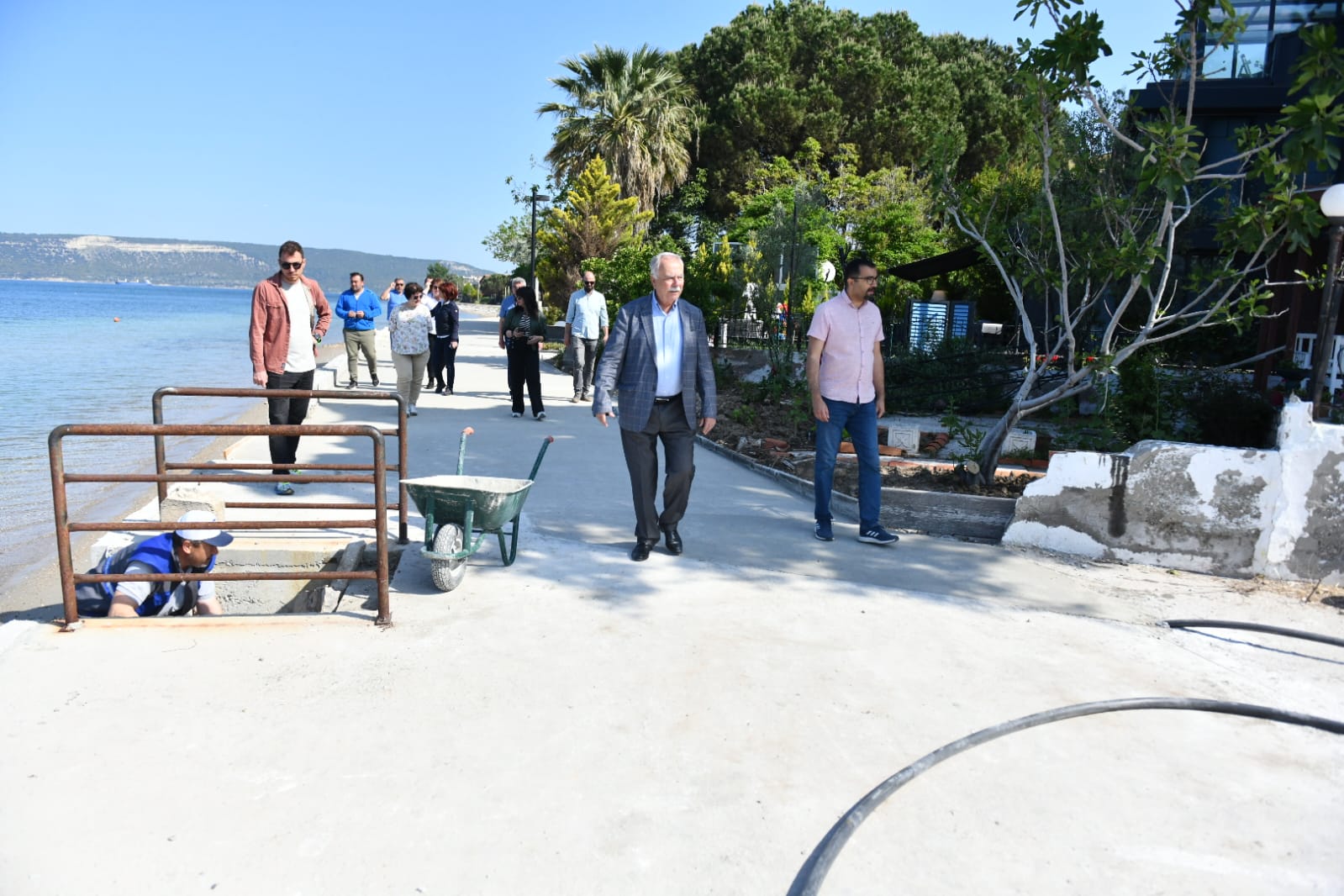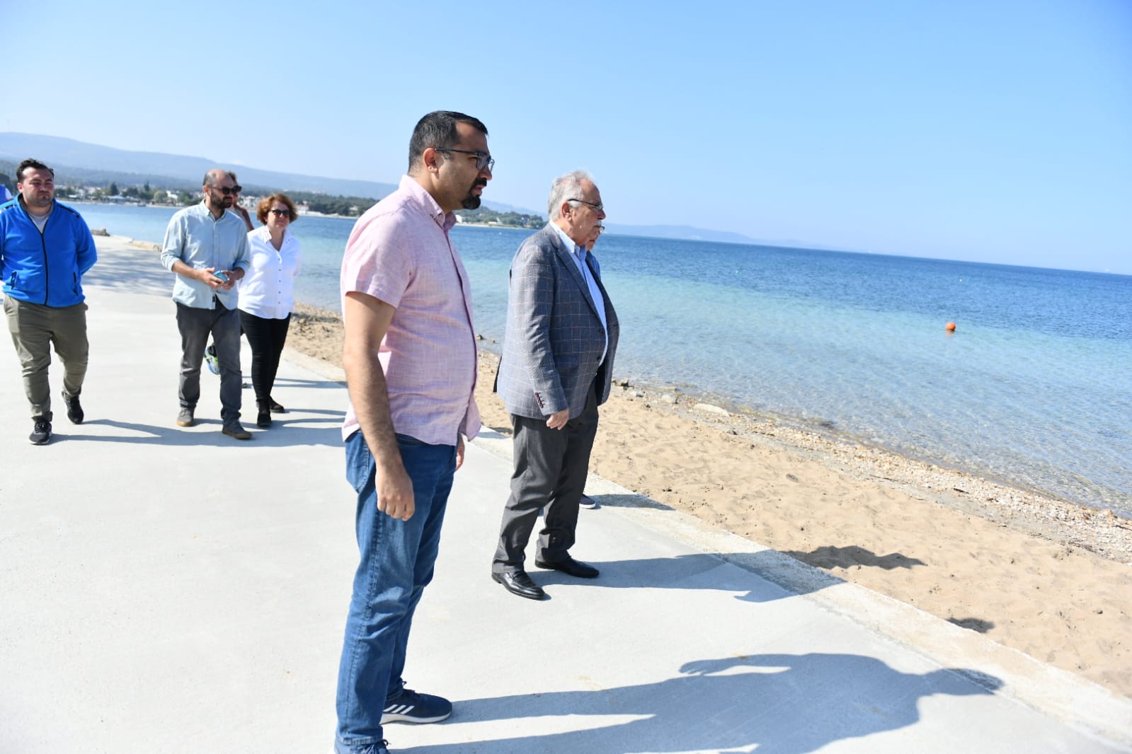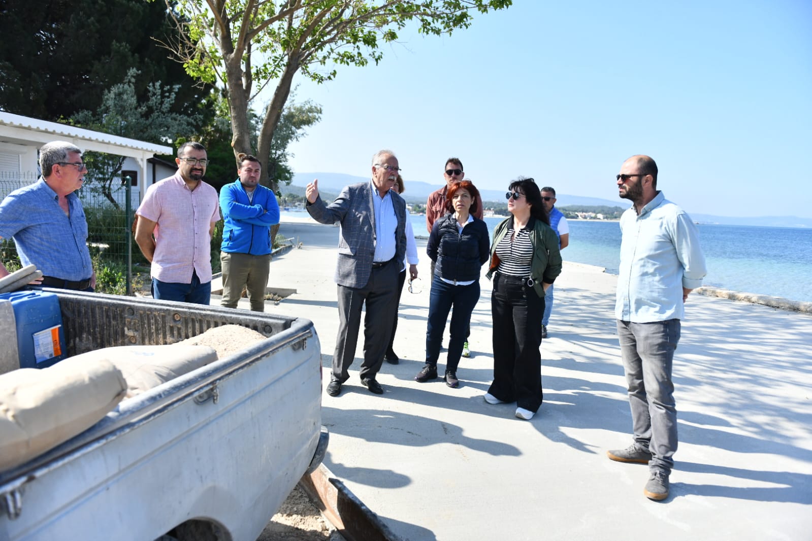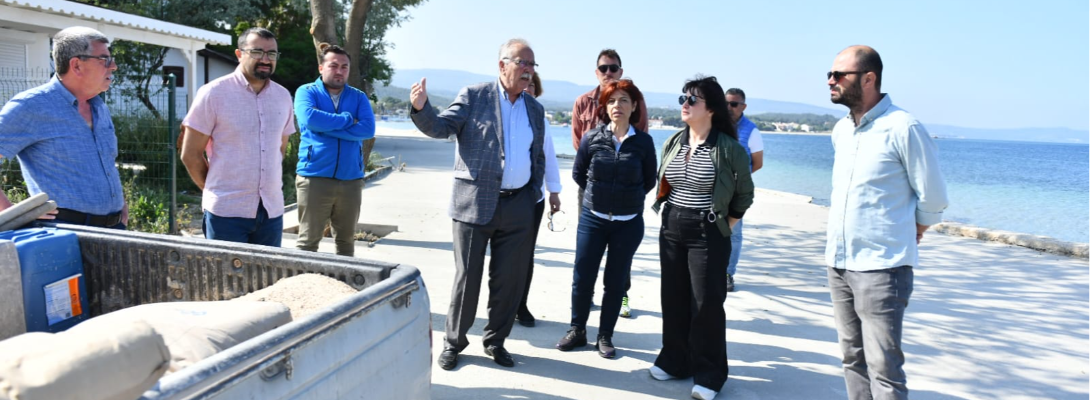 26 Mayıs 2023 Cuma günü düzenlenen teknik inceleme gezisi kapsamında Başkan Gökhan Dardanos’ta yapımı tüm hızı ile devam eden sahil düzenleme çalışmalarını yerinde inceledi. Belediye Başkan Yardımcıları Handan Özyayla Kenar ve Özleyiş Çetin’in de eşlik ettiği inceleme gezisinde çalışma alanını gezen Başkan Gökhan, çalışmaların durumu ve yapılacak düzenlemelere ilişkin teknik ekipten bilgi aldı.