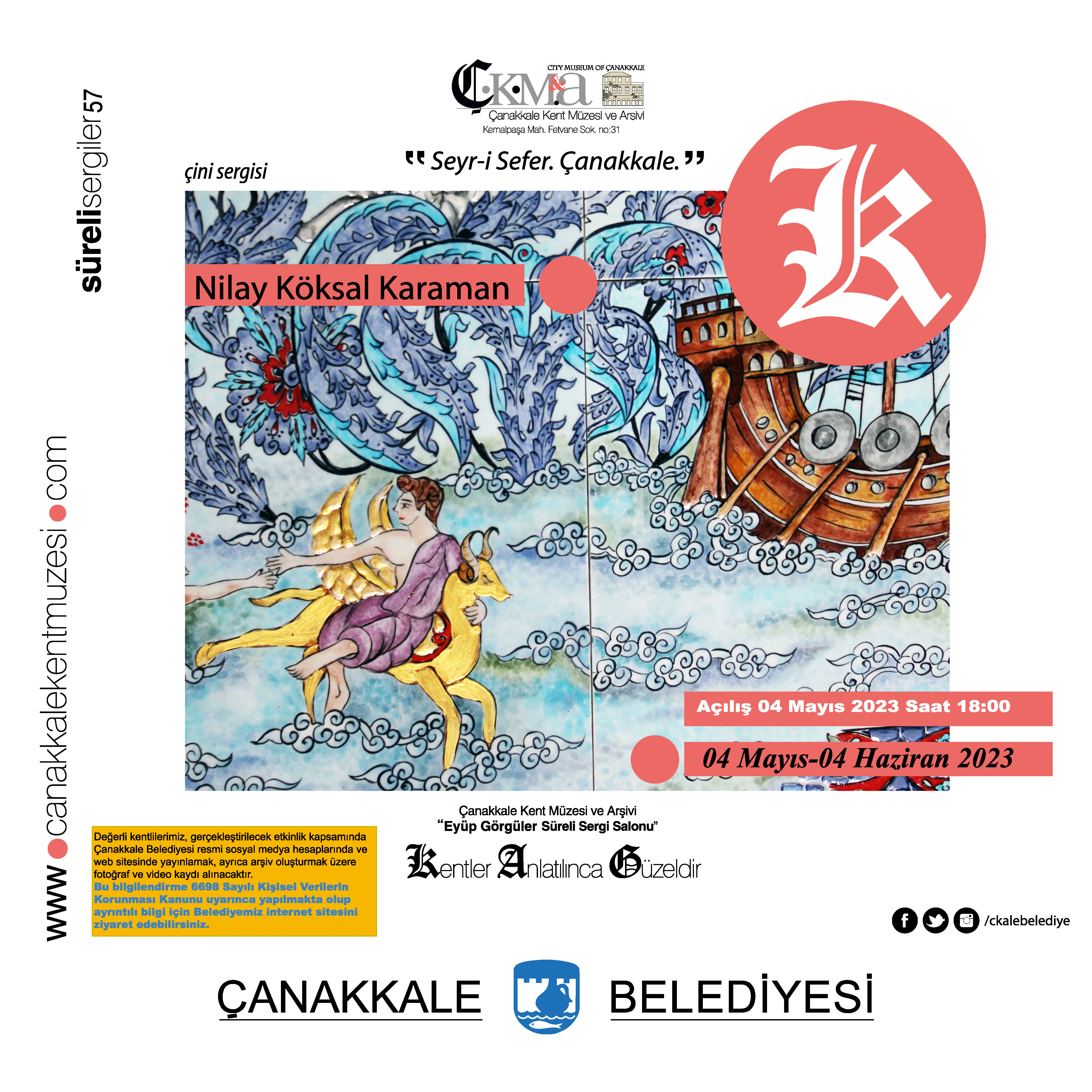 Çanakkale Kent Müzesi ve Arşivinde mayıs ayında ziyarete açılan Nilay Köksal Karaman'ın Seyr-i Sefer Çanakkale isimli sergisi 4 Haziran 2023 tarihine kadar ziyaret edilebilir.