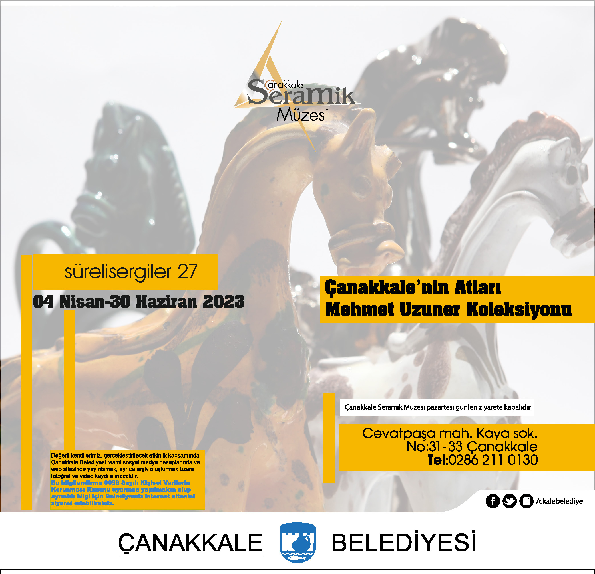 4 Nisan tarihinde ziyarete açılan Mehmet Uzuner Koleksiyonundan oluşan “Çanakkale'nin Atları” süreli sergisi 30 Haziran 2023 tarihine kadar Çanakkale Seramik Müzesinde ziyaret edilebilir.