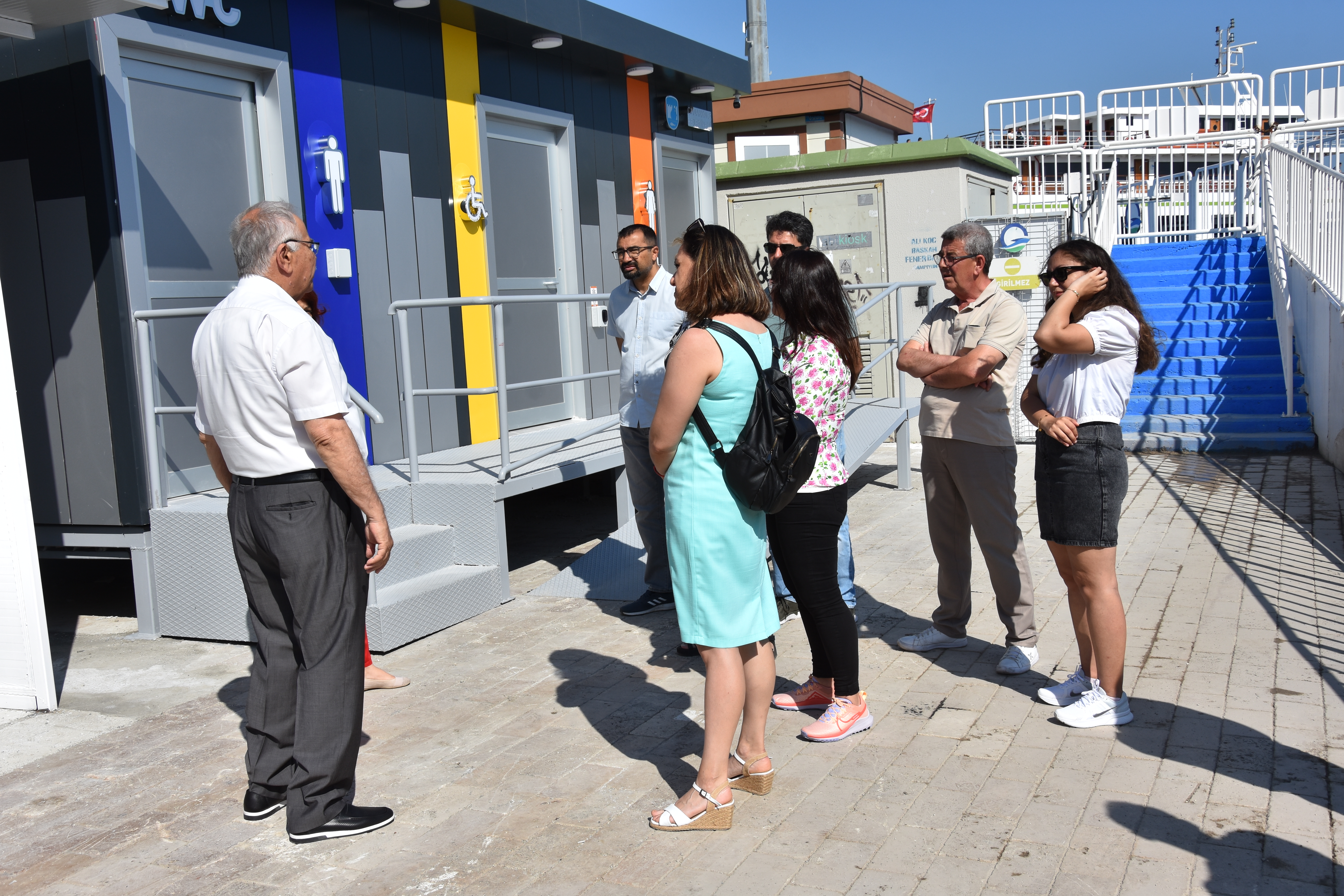 Belediye Başkanı Ülgür Gökhan da teknik ekiple birlikte İskele Meydanında yer alan Tuvalet Kabini Projesini inceleyerek, bilgi aldı.