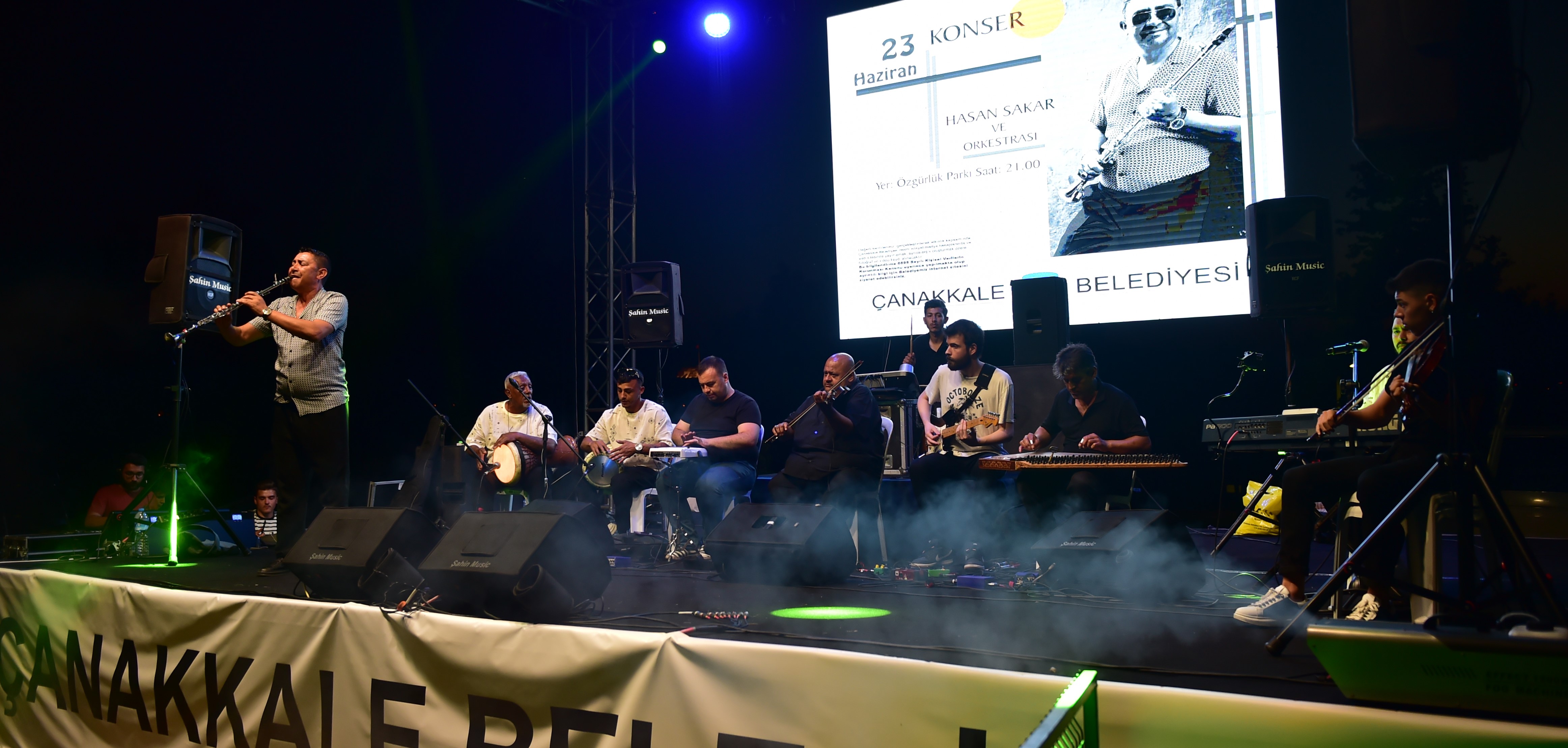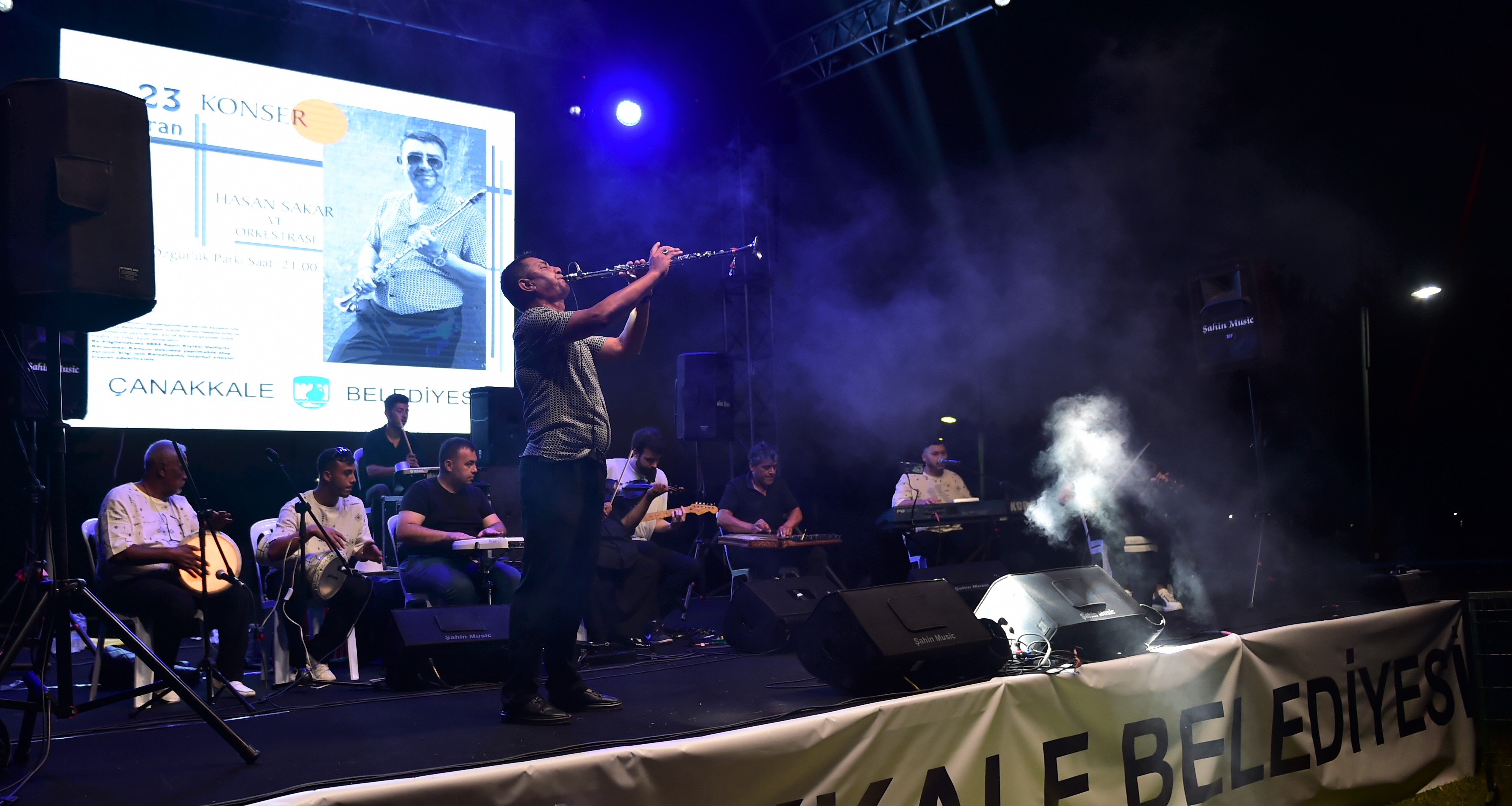 Çanakkale Belediyesi aylık kültür sanat etkinlikleri kapsamında, Hasan Sakar ve Orkestrası Özgürlük Parkı'nda bir konser verdi.