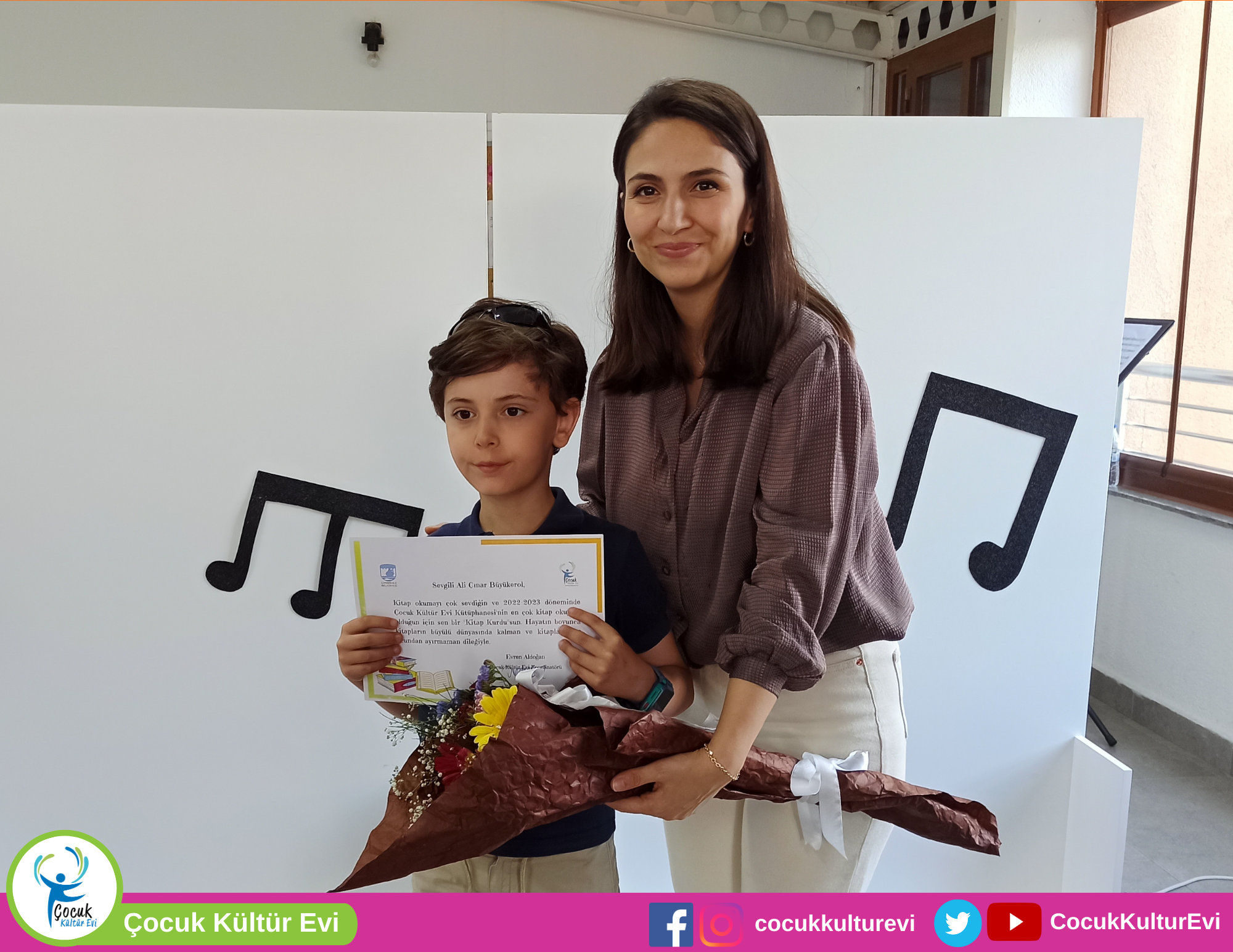 2022-2023 dönemi boyunca toplam 2152 ödünç kitap işlemi gerçekleştirilen kütüphanenin bu yıl en çok kitap okuyan Çocuk Kültür Evi üyeleri Elif Abbasoğlu, Ali Çınar Büyükerol ve Elif Su Atmaca oldu. Heyecanları ve mutlulukları gözlerinden okunan minik kitap kurtlarına Çanakkale Belediyesi tarafından hazırlanan kitap setleri ile “Yılın Kitap Kurdu” belgeleri, Çocuk Kültür Evi Evi kütüphane sorumlusu Gözde Kök ve Çocuk Kültür Evi Çocuk ve Gençlik Orkestrası eğitmeni Çiğdem Ergun Güvenç tarafından takdim edildi.