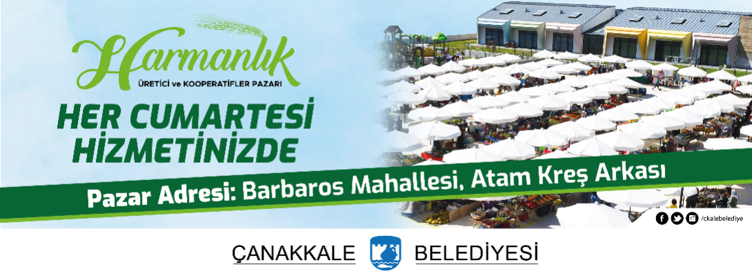 Çanakkale Belediyesi, üretime destek olmak ve ürünlerin aracısız olarak tedarikine katkı sunmak amacıyla son dönem projesi olan Harmanlık Üretici ve Kooperatifler Pazarı, Barbaros Mahallesi / Barbaros Atam Kreş ve Gündüz Bakımevi arkasında (Havalimanı Mevkii) yer almaktadır.