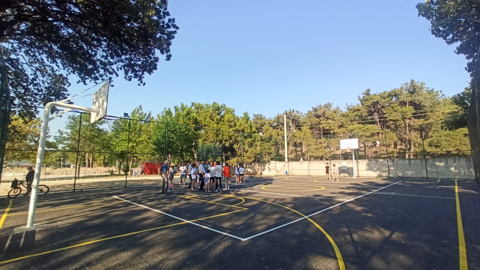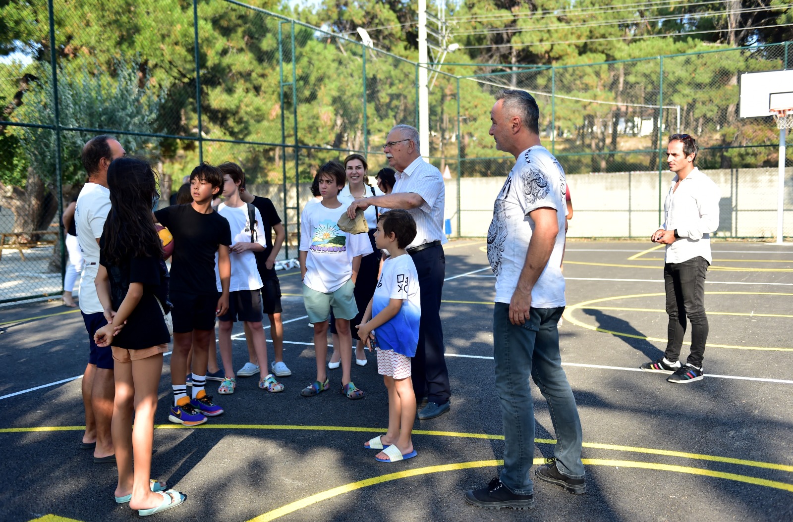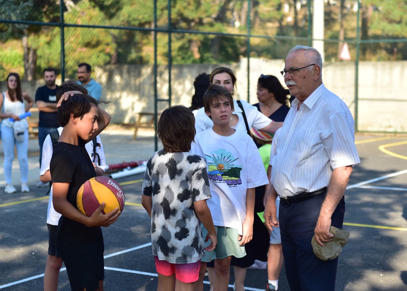 Belediye Başkanı Ülgür Gökhan, Güzelyalı'da yeni yapılan basketbol sahasında çocuklar ile buluştu.