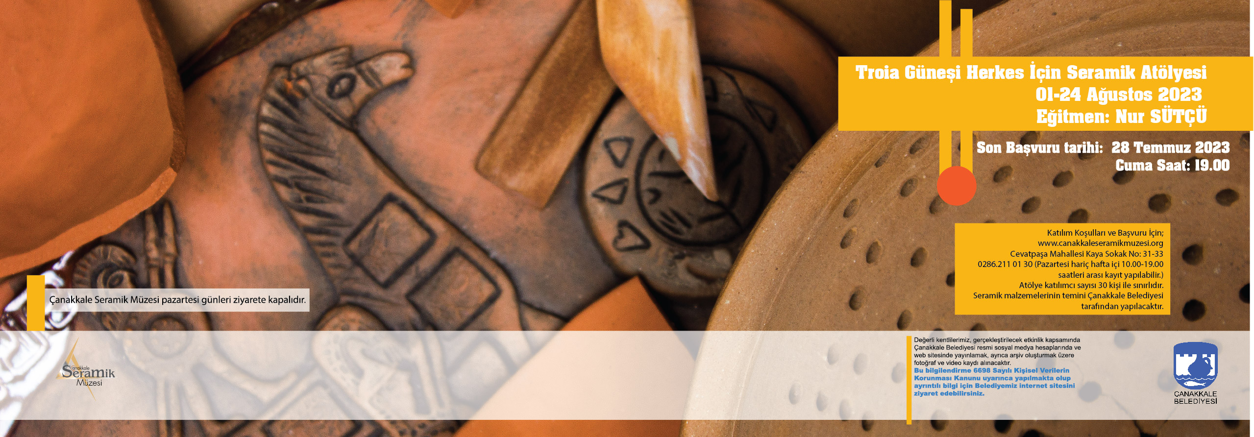 Çanakkale Seramik Müzesi tarafından 01-24 Ağustos 2023 tarihleri arasında Troia Güneşi Herkes İçin Seramik Atölyeleri düzenleniyor. Atölye çalışmasıyla kent yaşamını paylaşan herkesin seramik sanatıyla uygulamalı olarak tanışması, sanatsal bir üretimin içinde olmasını amaçlıyor.