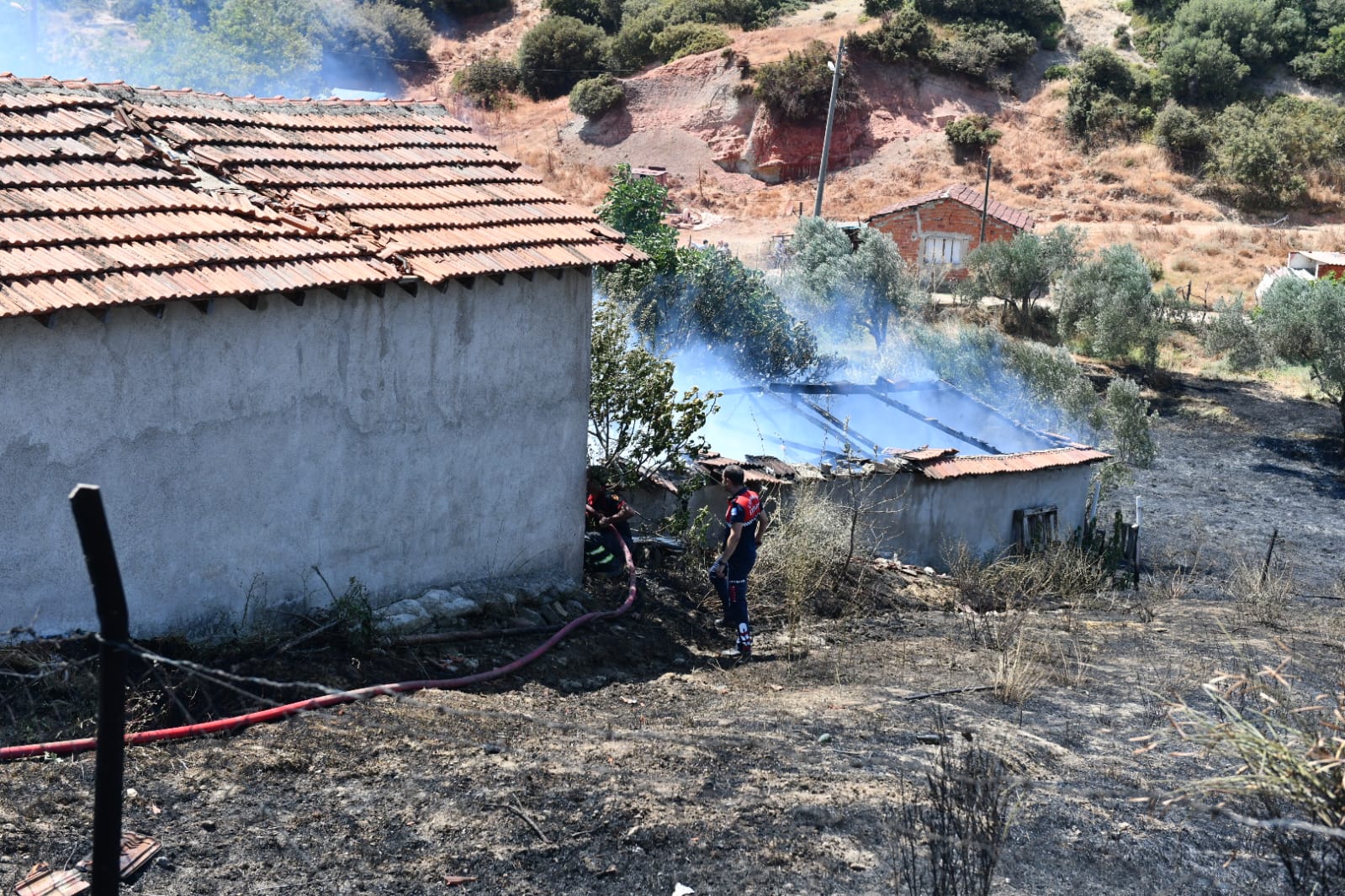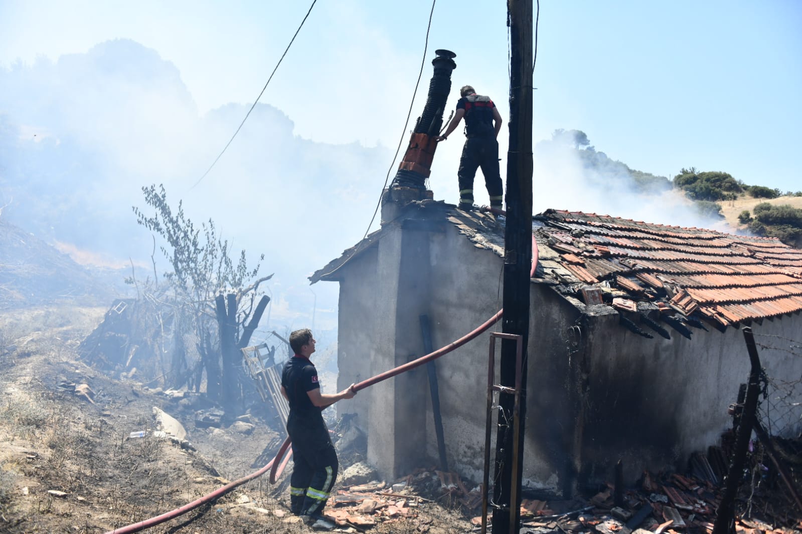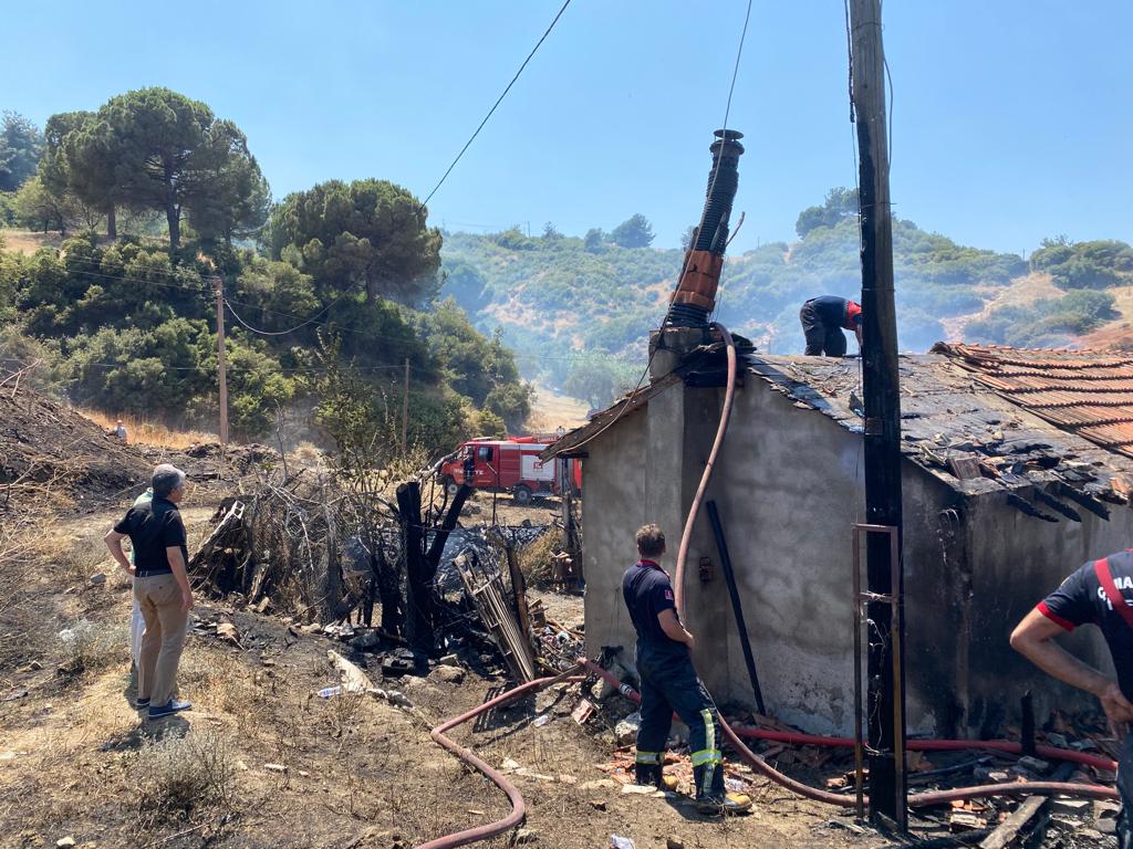 Sarıcaeli'nde çıkan yangın nedeni ile yanan otluk alan ve 3 damda soğutma çalışmaları devam ediyor.
