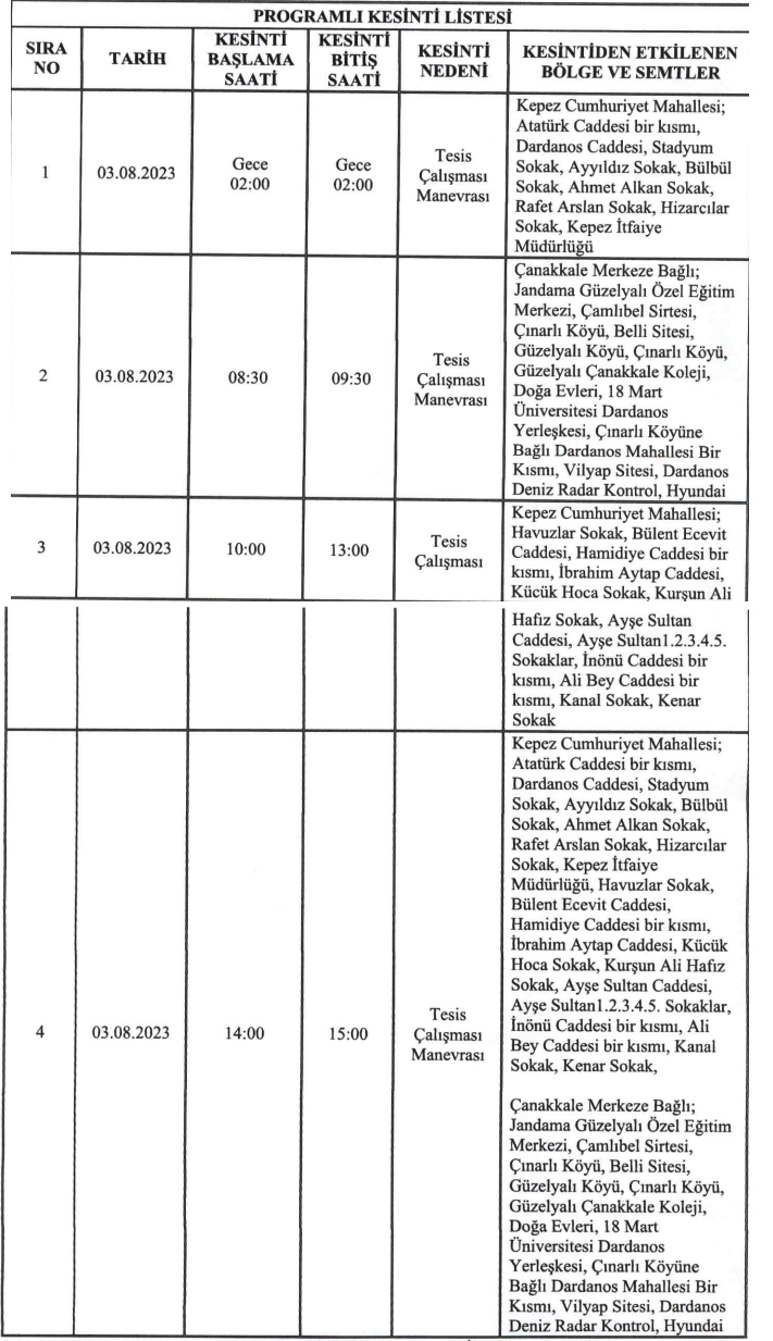 Uludağ Elektrik Dağıtım A.Ş. Çanakkale İşletme Bakım Mühendisliğinden yapılan açıklamaya göre;