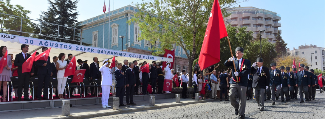 Zafer Bayramımızın 101. Yıldönümü etkinlikleri kapsamında ilk olarak Çanakkale Valiliği önünde gerçekleşen törene Vali İlhami Aktaş, Boğaz ve Garnizon Komutanı Tuğamiral Mustafa Biçen, Çanakkale Belediye Başkan Vekili M. İrfan Mutluay, CHP Çanakkale Milletvekilleri İsmet Güneşhan ve Özgür Ceylan başta olmak üzere kent protokolü, kurum ve kuruluş temsilcileri, askeri erkan ve kentliler katıldı. Atatürk Anıtına çelenk sunumu ile başlayan tören saygı duruşu ve İstiklal Marşı'nın okunması ile son buldu.